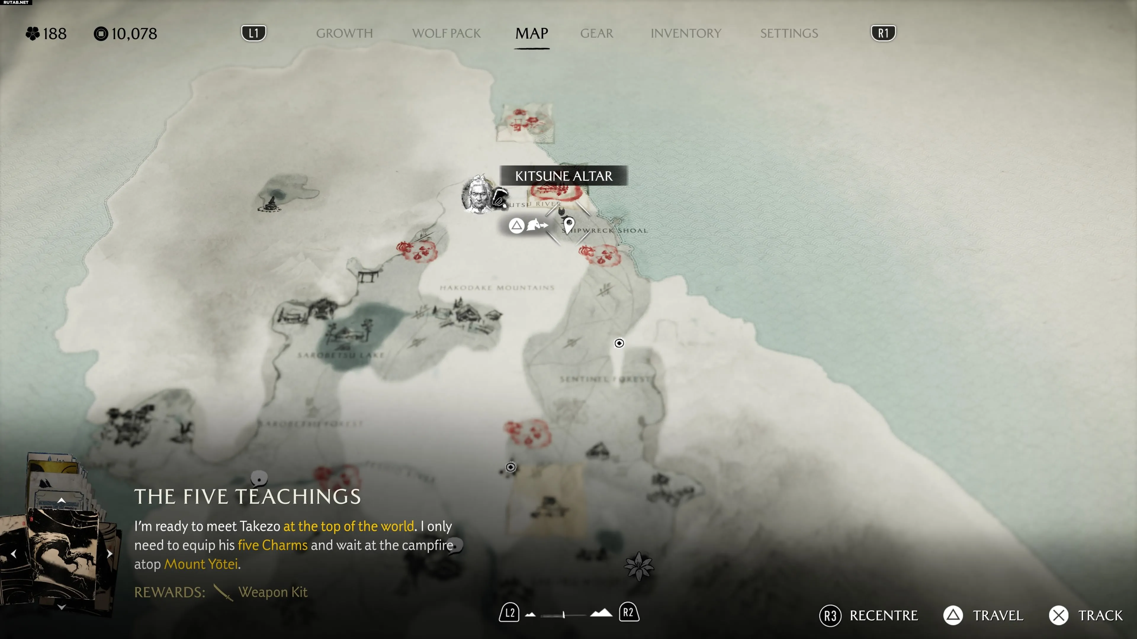 Отправляйтесь на северо-восток Хребта Тесио, где вы найдёте Отмель Кораблекрушения. Продолжайте движение по этому пути, чтобы обнаружить Лисьий алтарь, расположенный прямо над буквой «О» в слове «Кораблекрушение» на карте. Ларец-головоломка находится на алтаре.