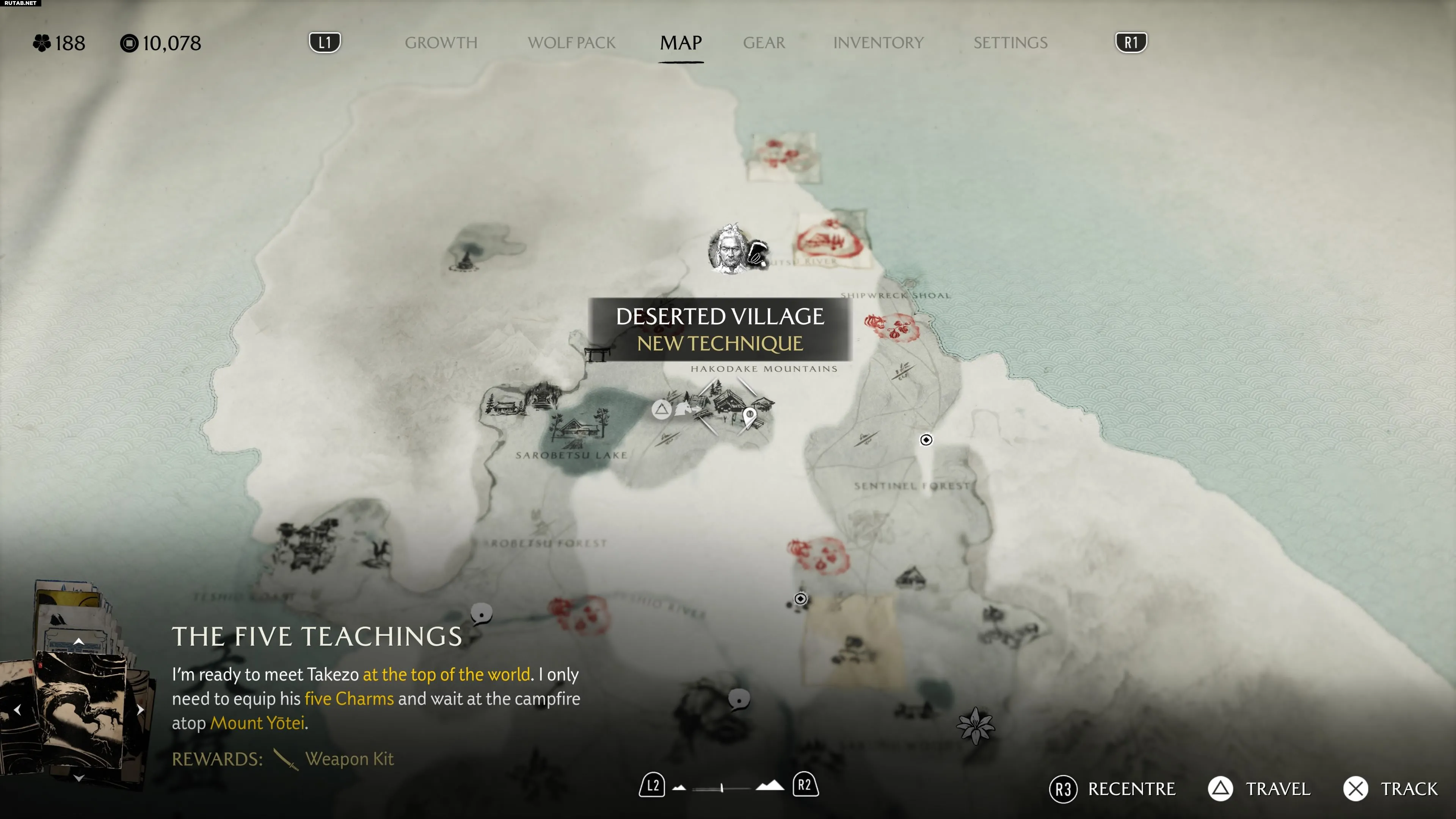Заброшенную деревню можно найти в южном регионе гор Таходакэ, прямо под буквами «К», «О» и «Д» в слове «Таходакэ» на карте. Это лагерь Шести Йотея, поэтому очистите его от врагов и найдите ларец-головоломку на Алтаре Отражения.