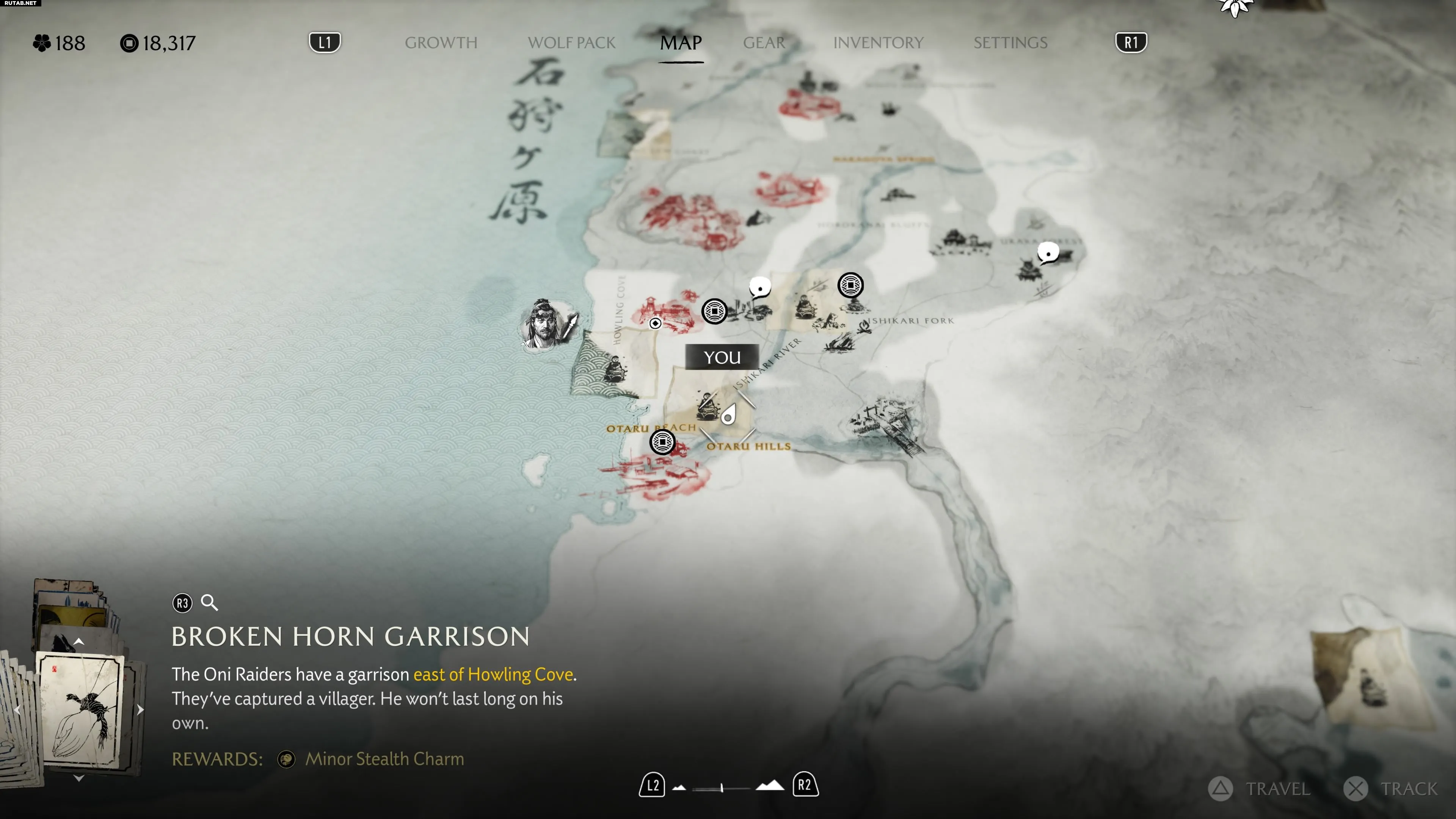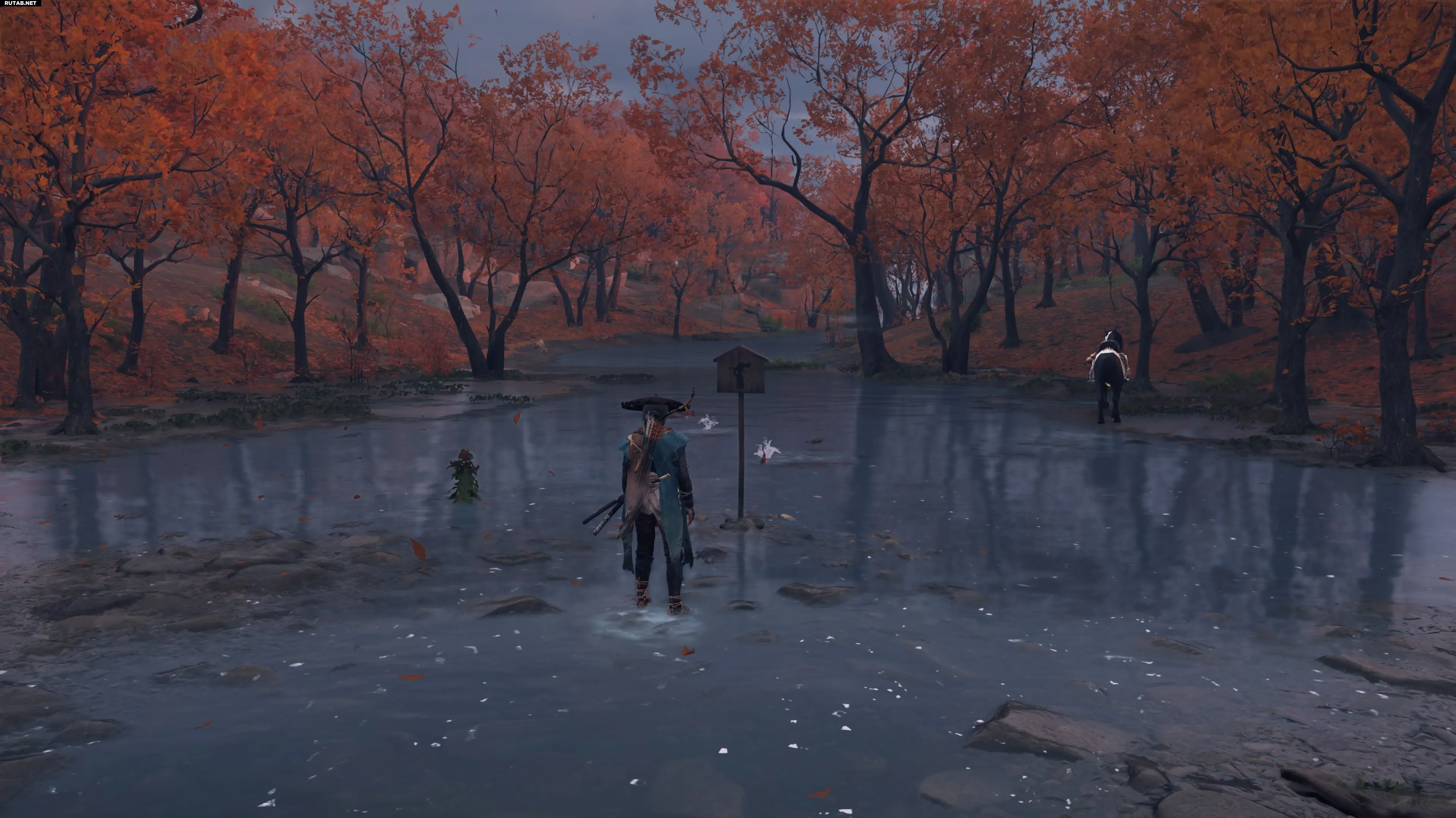 После прибытия в регион равнины Исикари во время охоты на Они, направляйтесь к реке Сикари. На карте, между пляжем Отару и холмами Отару, вы заметите указатель Особого места на речной тропе среди оранжевых деревьев.