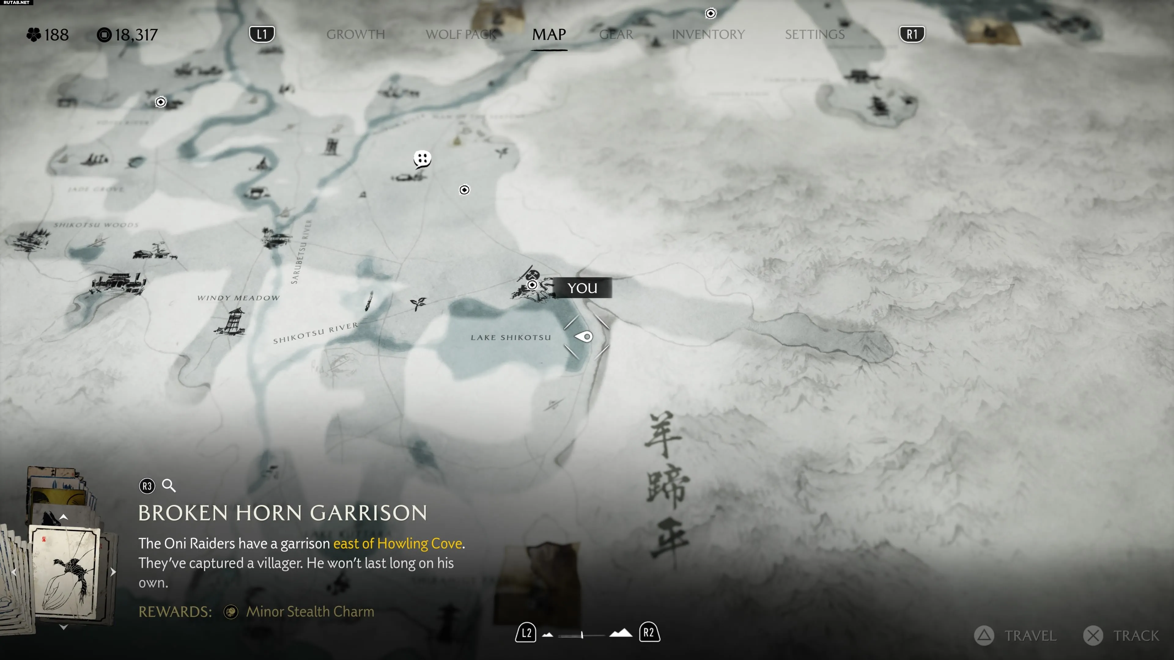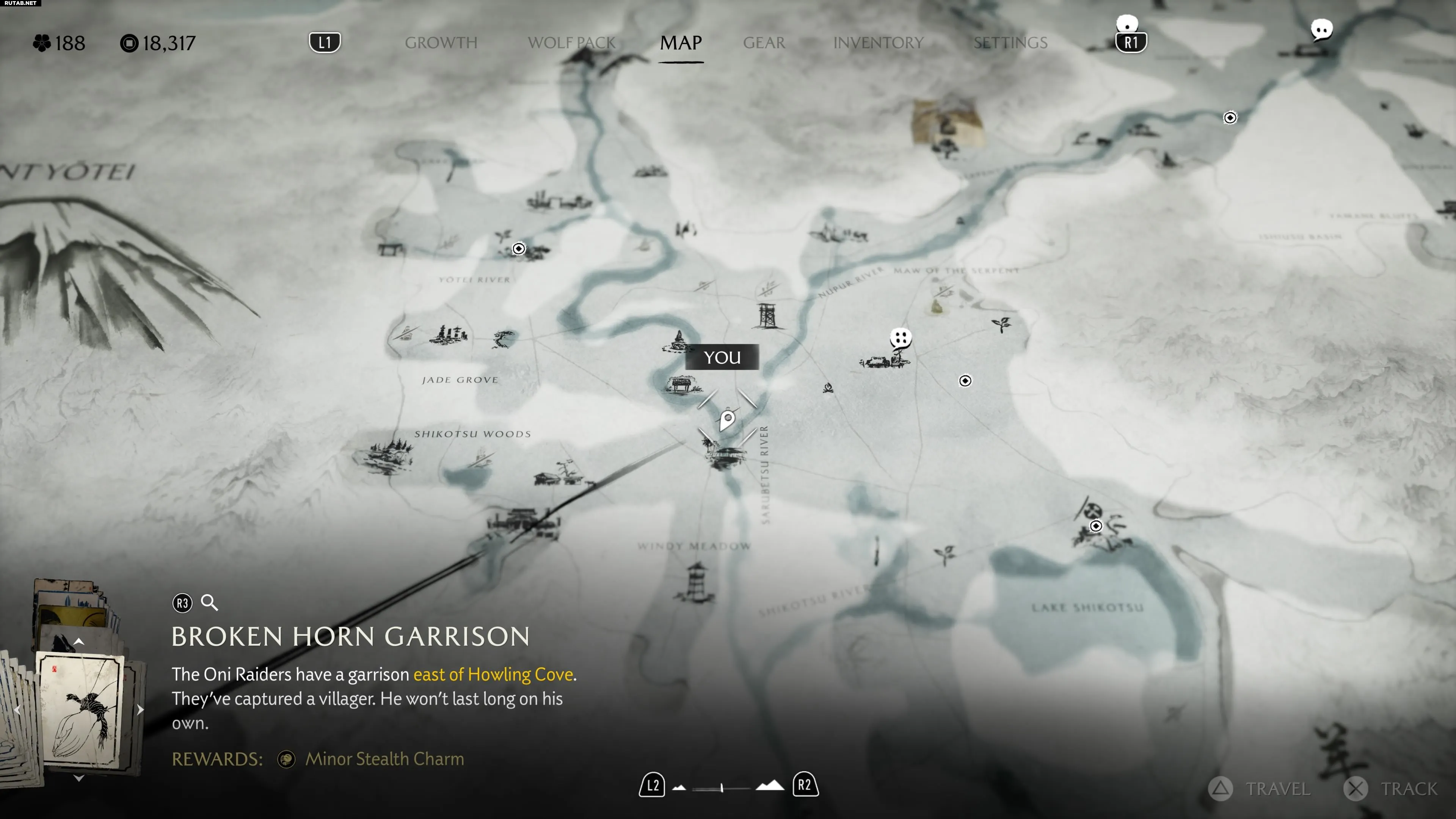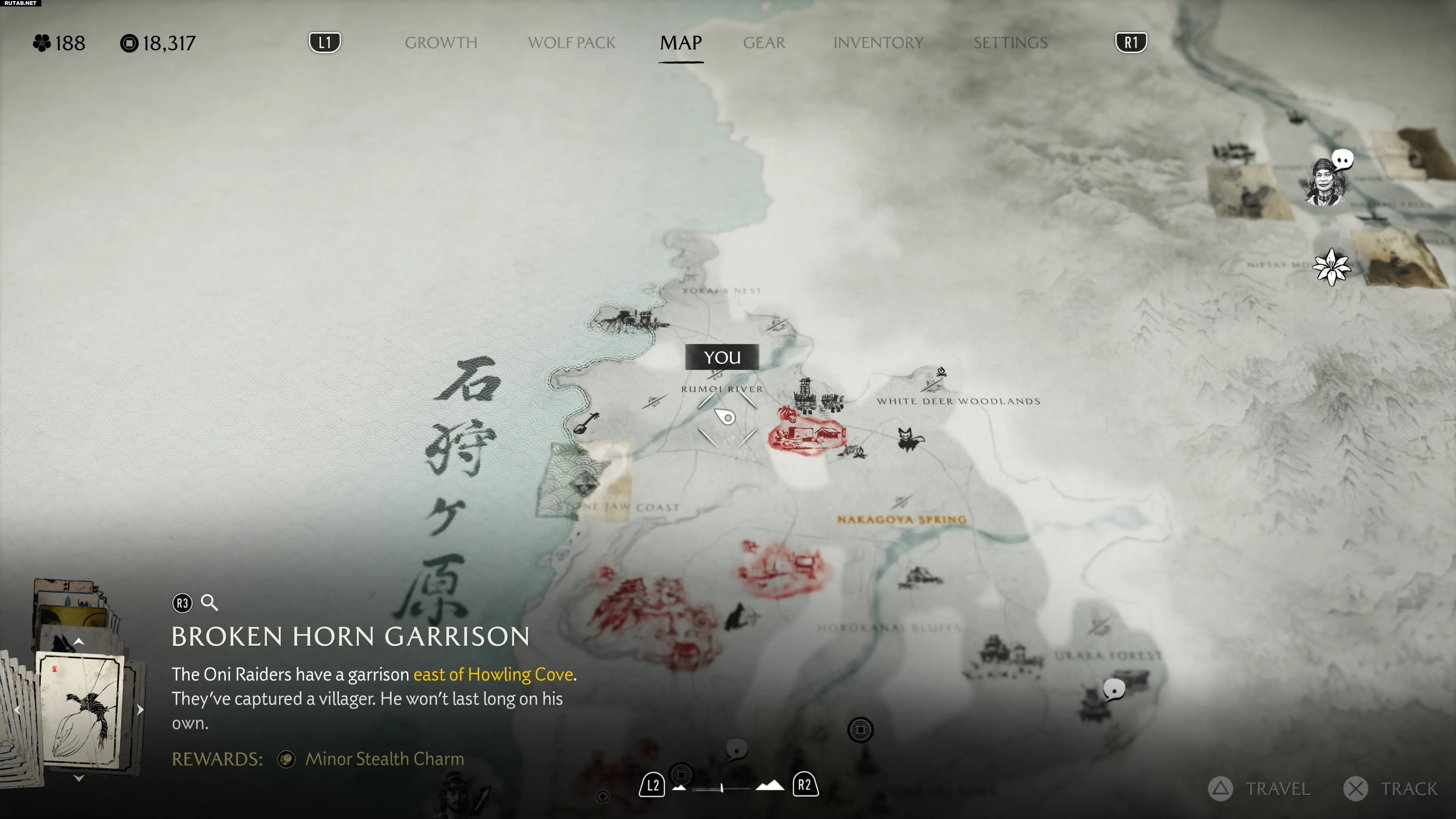 Продвигайтесь на север через заснеженный регион Найоро Уайлдс, чтобы достичь области Тешио Ридж. Оказавшись здесь, направляйтесь в самую восточную часть леса Сакуру Вудс. В лесу двигайтесь на север от буквы «D» в слове «Woods» на карте, пока не окажетесь у холодного озера. На ближайшем камне с видом на озеро вы найдете особое место.