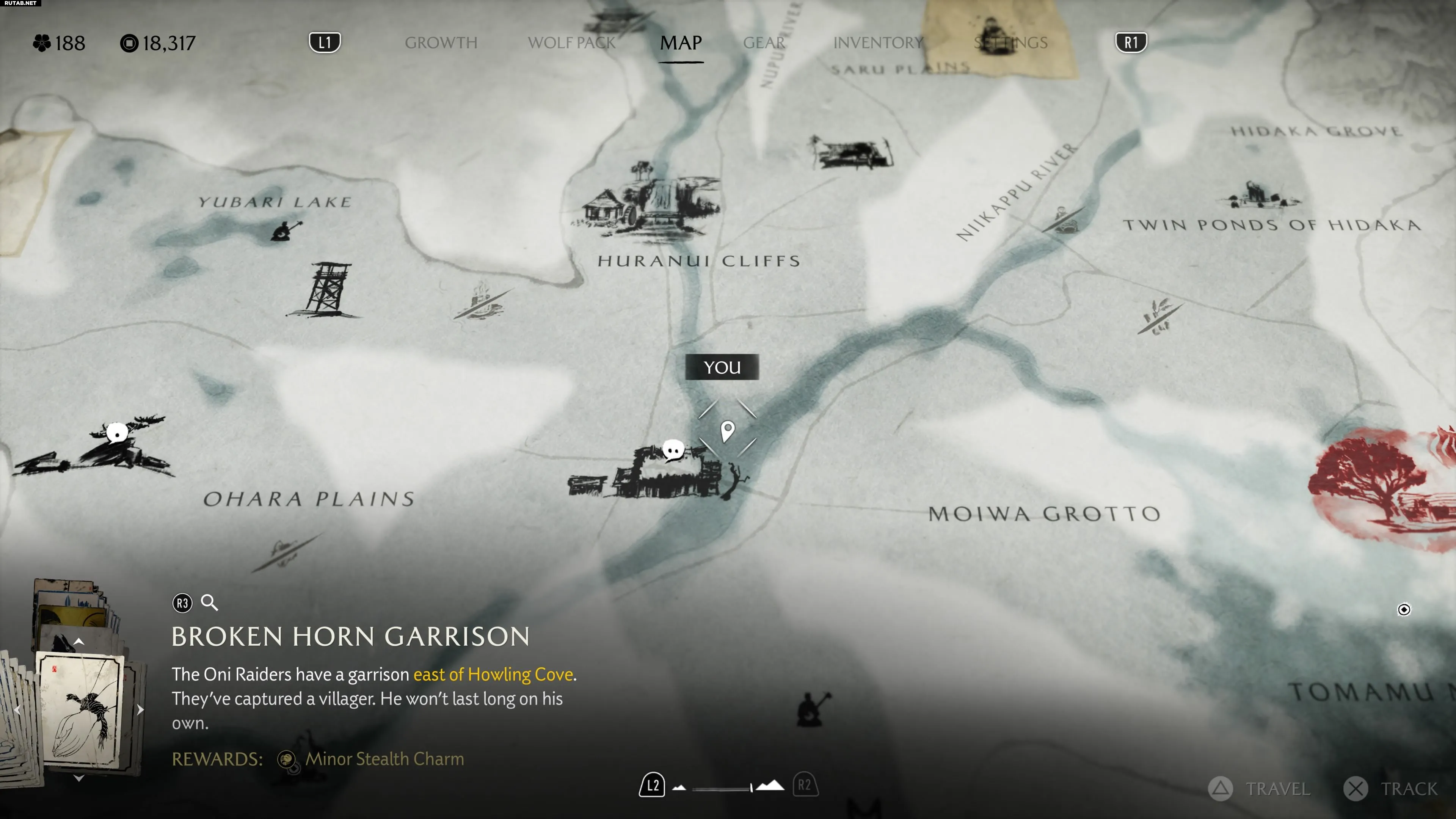 Продолжайте движение на север через хребет Токати. Между равнинами Охара и гротом Мойва вы найдёте постоялый двор «Отдых Хурануя» у реки. Совсем недалеко к северу от него, между раздваивающейся рекой, на берегу находится это Особое место.