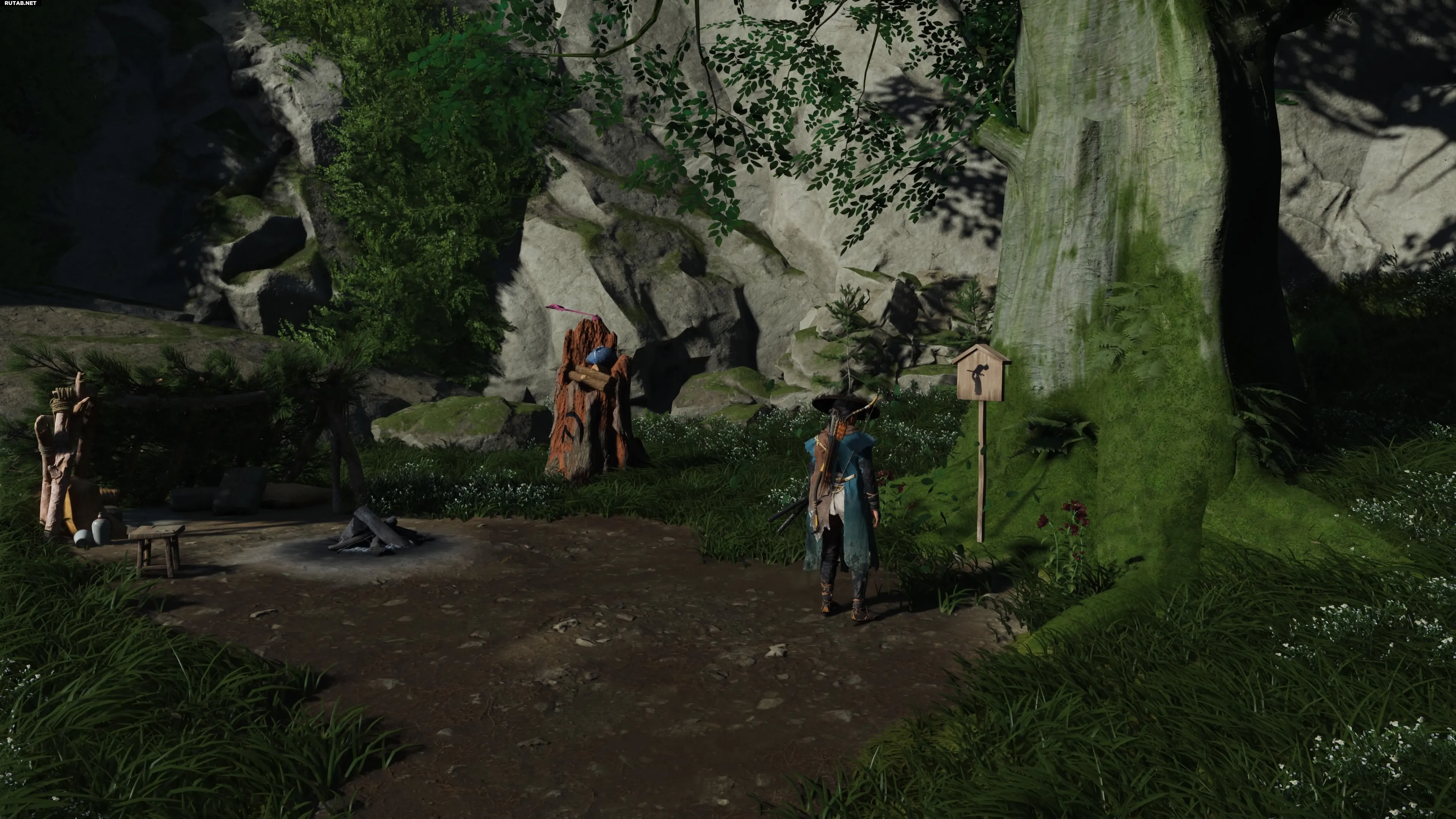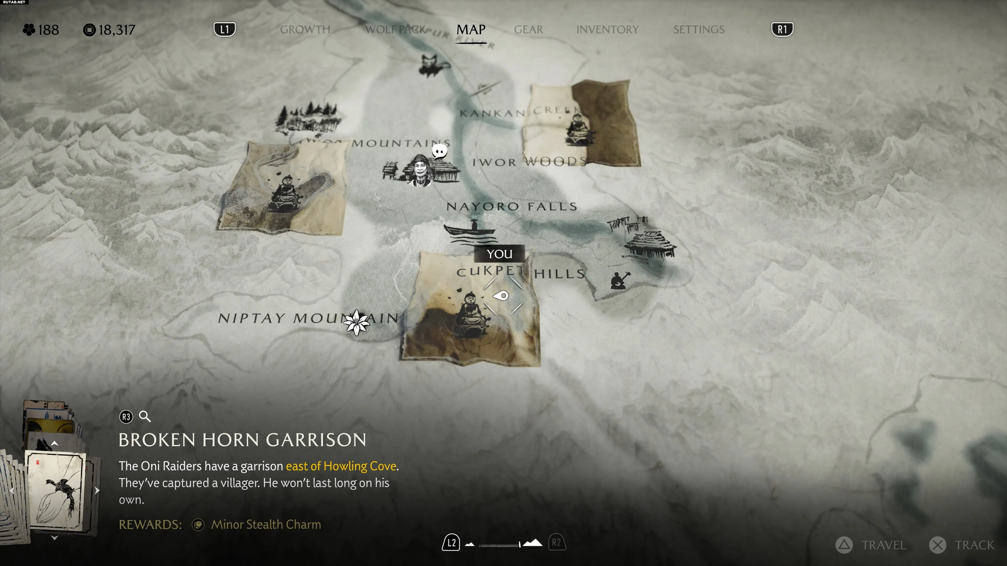 После разговора с Хучи в северной части хребта Токати вы можете переправиться на пароме через Великое озеро, чтобы достичь диких земель Наёро и начать охоту на Кицунэ. По прибытии направляйтесь в самую южную точку холмов Кукпет, где вы наткнётесь на заброшенный лагерь. Указатель Особого места находится у старого дерева, прямо под буквой «П» в названии «Кукпет» на карте.
