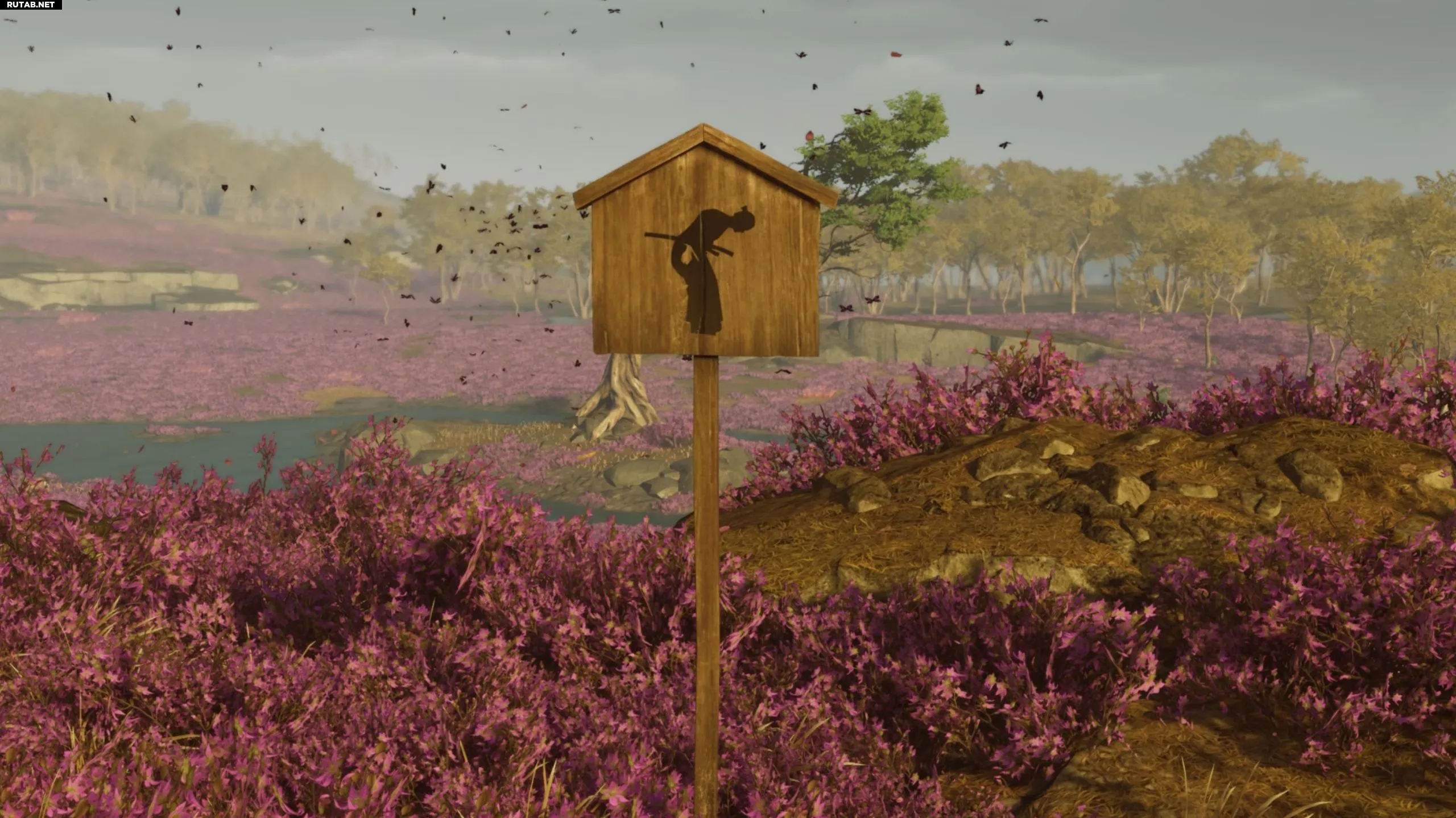 Продвигайтесь дальше на север от равнины Исикари к реке Румой. Пробегите до ближайшего цветочного поля и встаньте на камень, с которого открывается вид на мёртвое дерево в реке среди фиолетовых цветов, чтобы найти это Особое место.