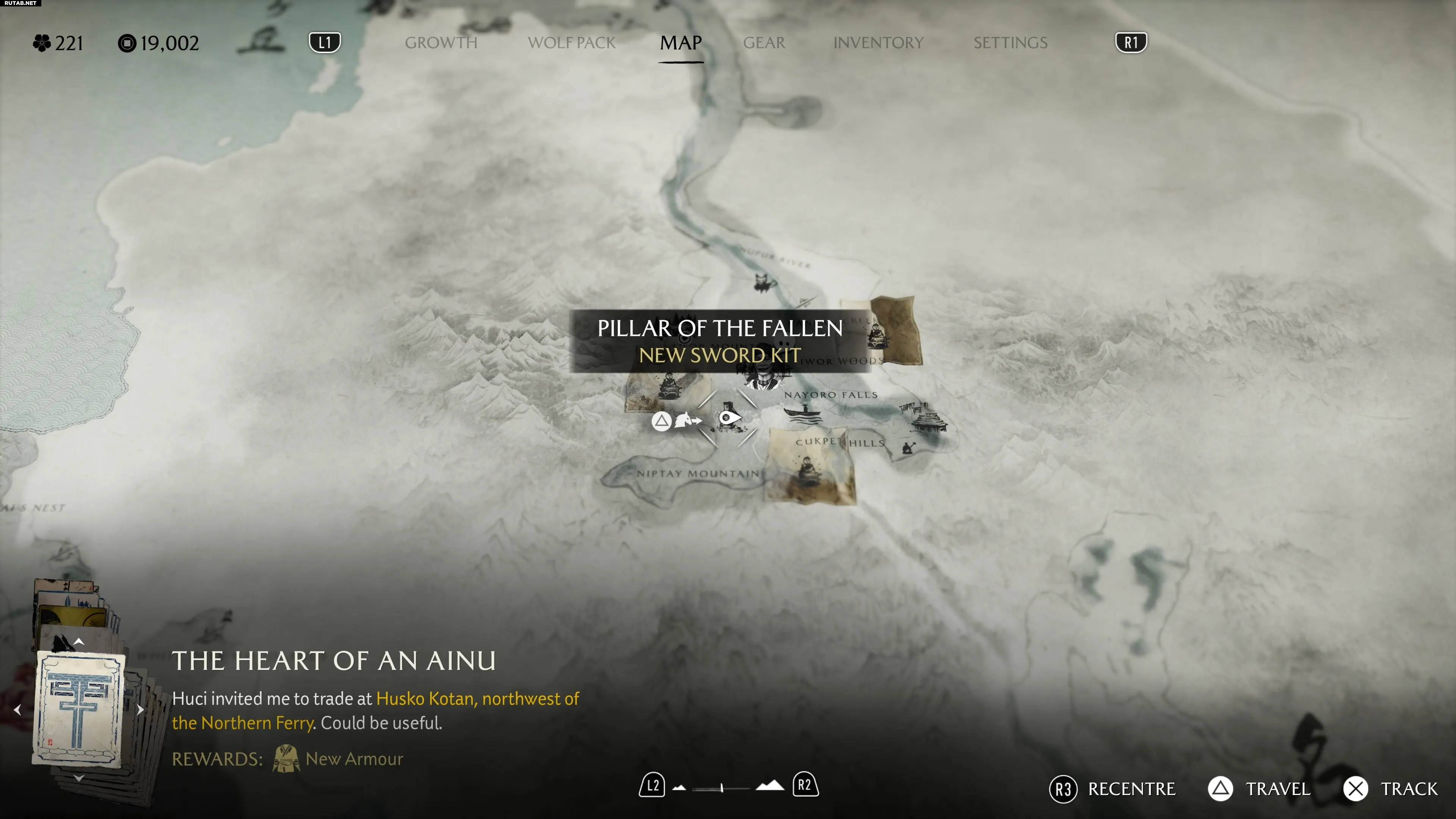 Следуйте вверх по течению реки Ниикаппу на север, пока не достигнете водопада Ниикаппу. Добравшись до места, посмотрите на холм в центре, обращённый к водопаду, где вы и обнаружите этот Столп Павших.