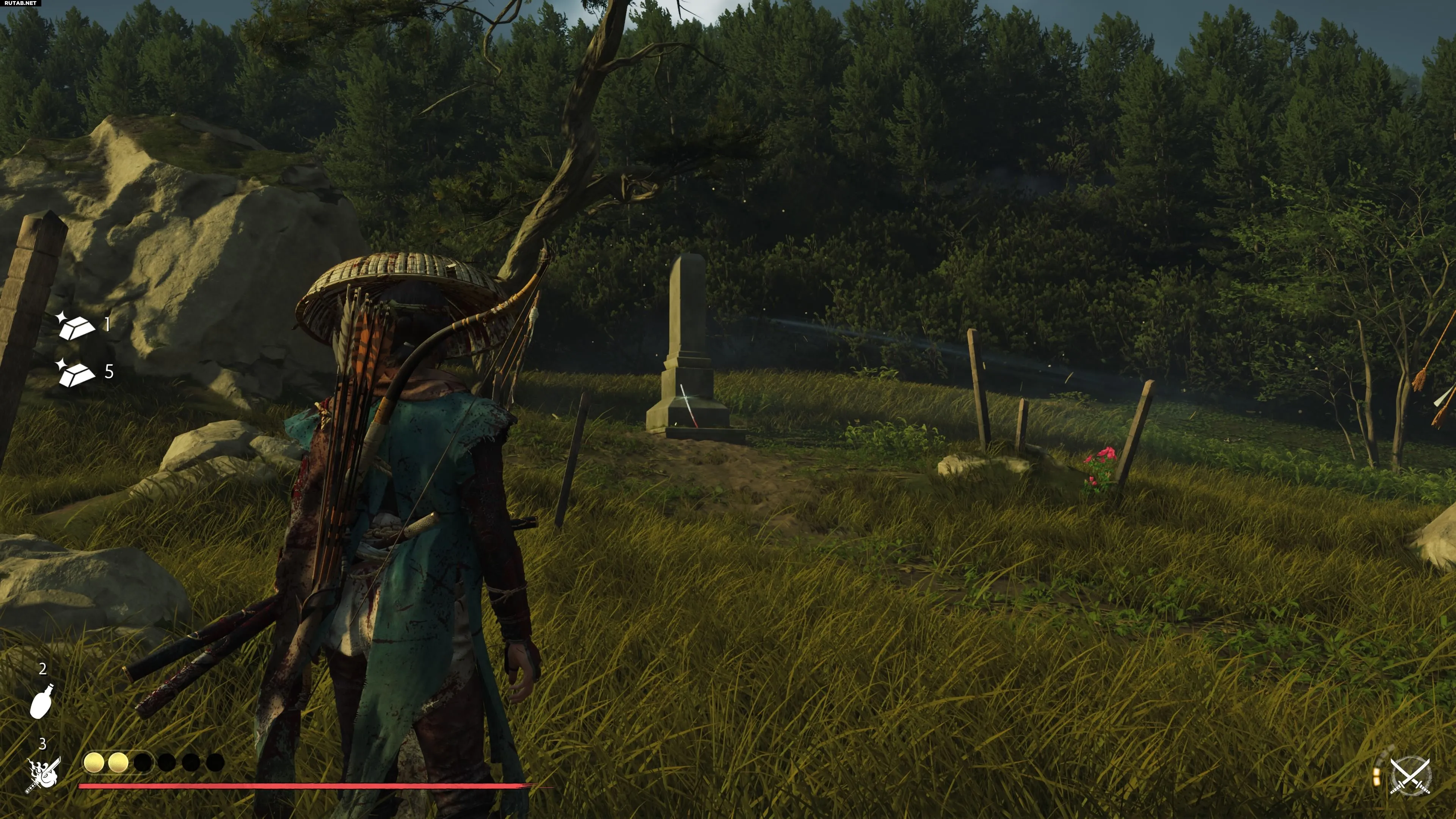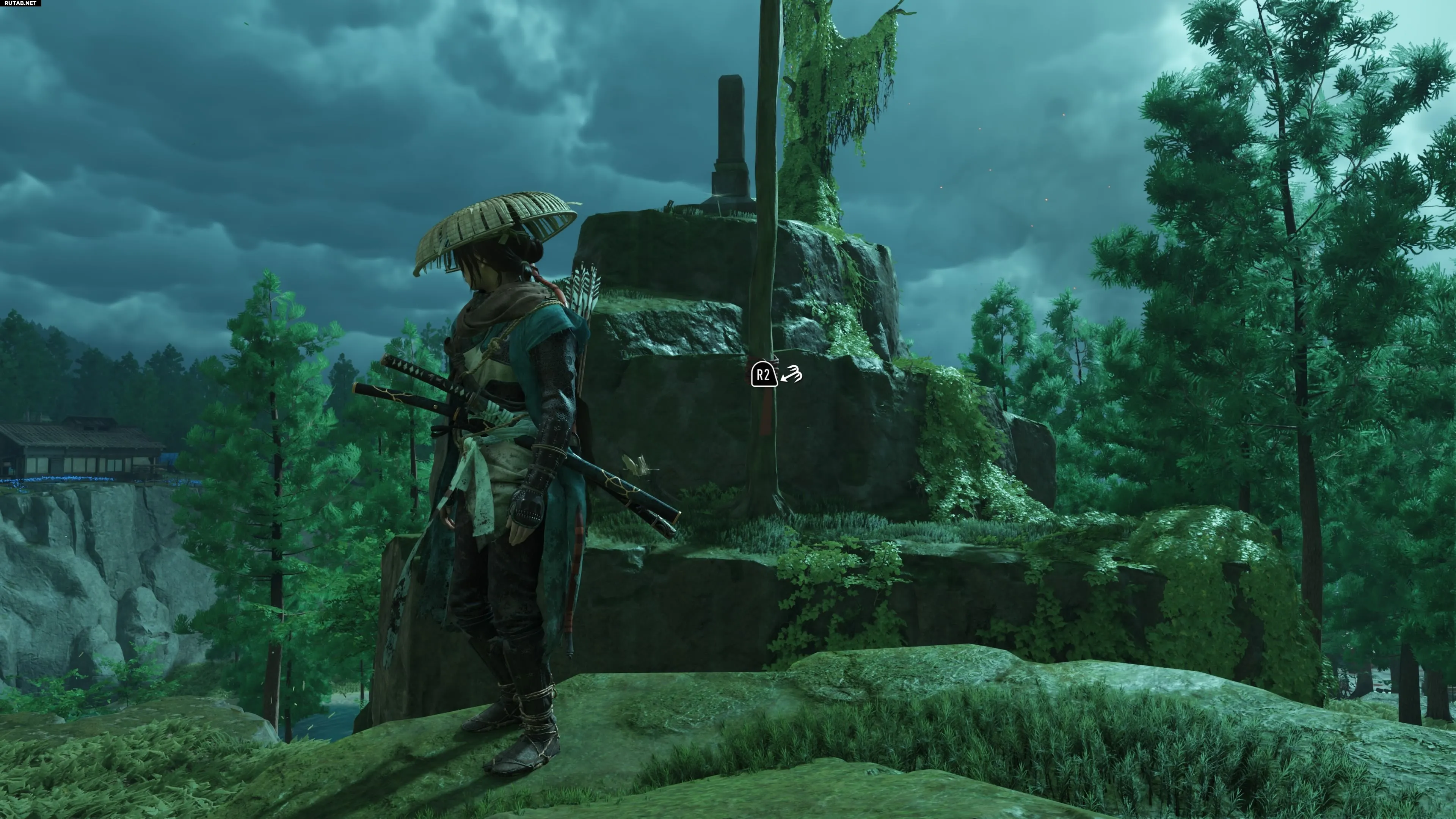 Чтобы взобраться на этот камень, нужно обойти скальную стену, пока не найдёте точку начала подъёма, отмеченную белой краской. Затем используйте крюк-кошку, чтобы забраться наверх и достичь вершины.