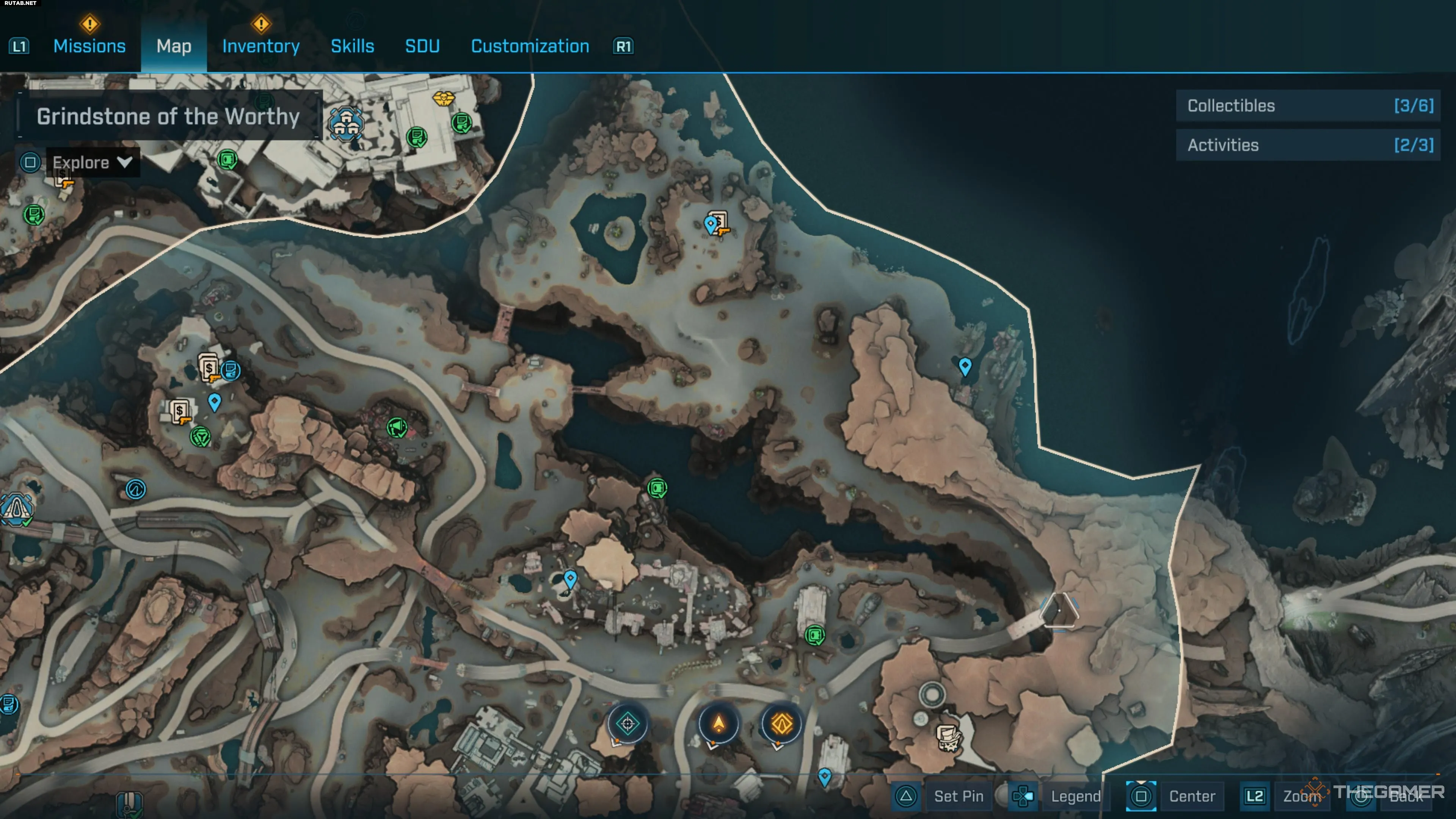 Следуйте по дороге на восток через Жернов Достойного, как будто вы покидаете Каркадия-Бёрн, но остановитесь у высокого сооружения к северу от «Экскруцибля». На карте оно отмечено белым прямоугольником. Взберитесь наверх, используя точку для крюк-кошки на западной стороне, затем пройдите по мосткам к сейфу на противоположном конце.