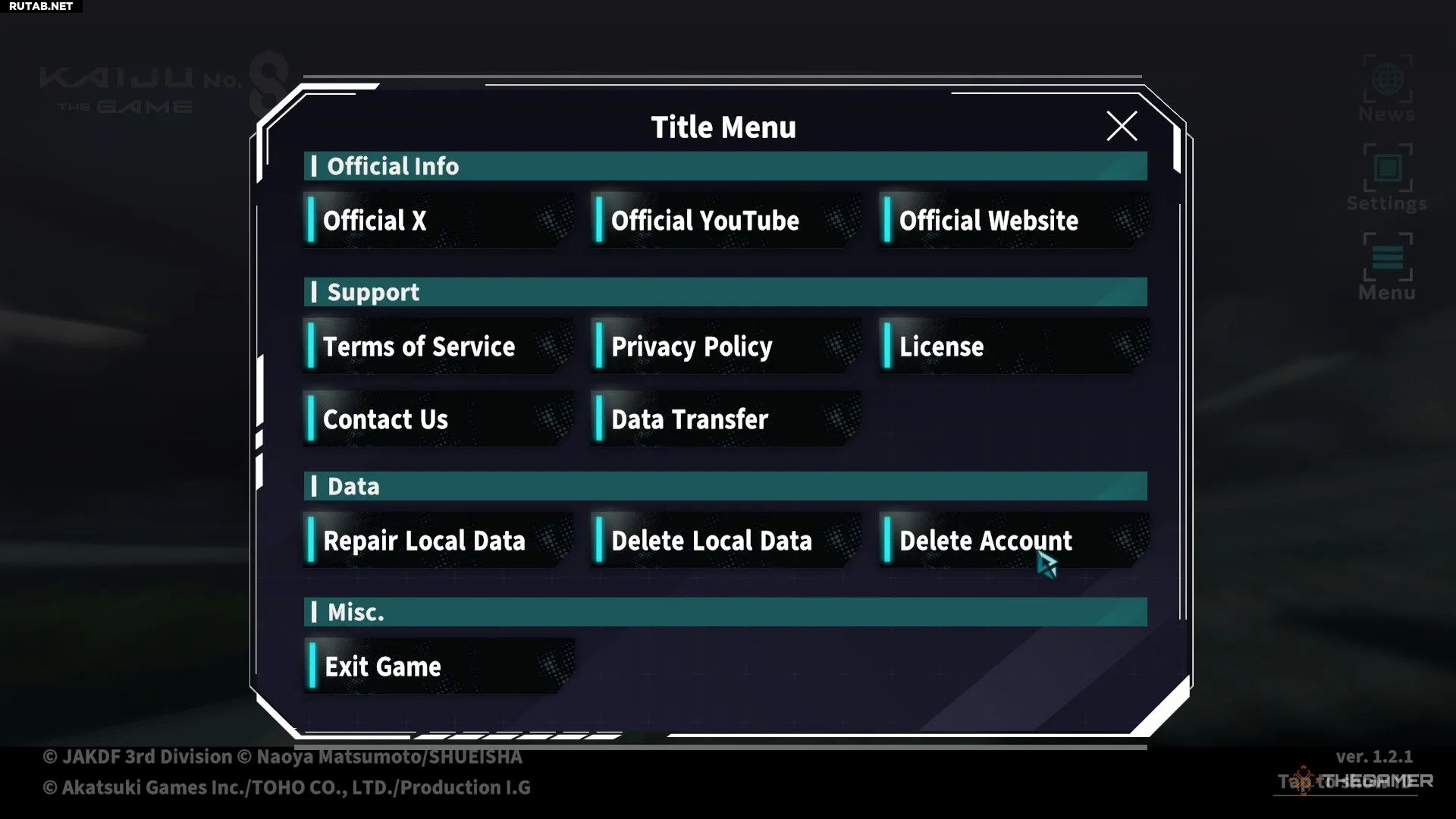 К счастью, в Kaiju No. 8 The Game рероллить легко. Просто откройте меню (иконка домика в главном меню) и выберите последнюю опцию «На заглавный экран». Затем нажмите меню в правом верхнем углу (три линии), перейдите в «Данные» и выберите «Удалить аккаунт».