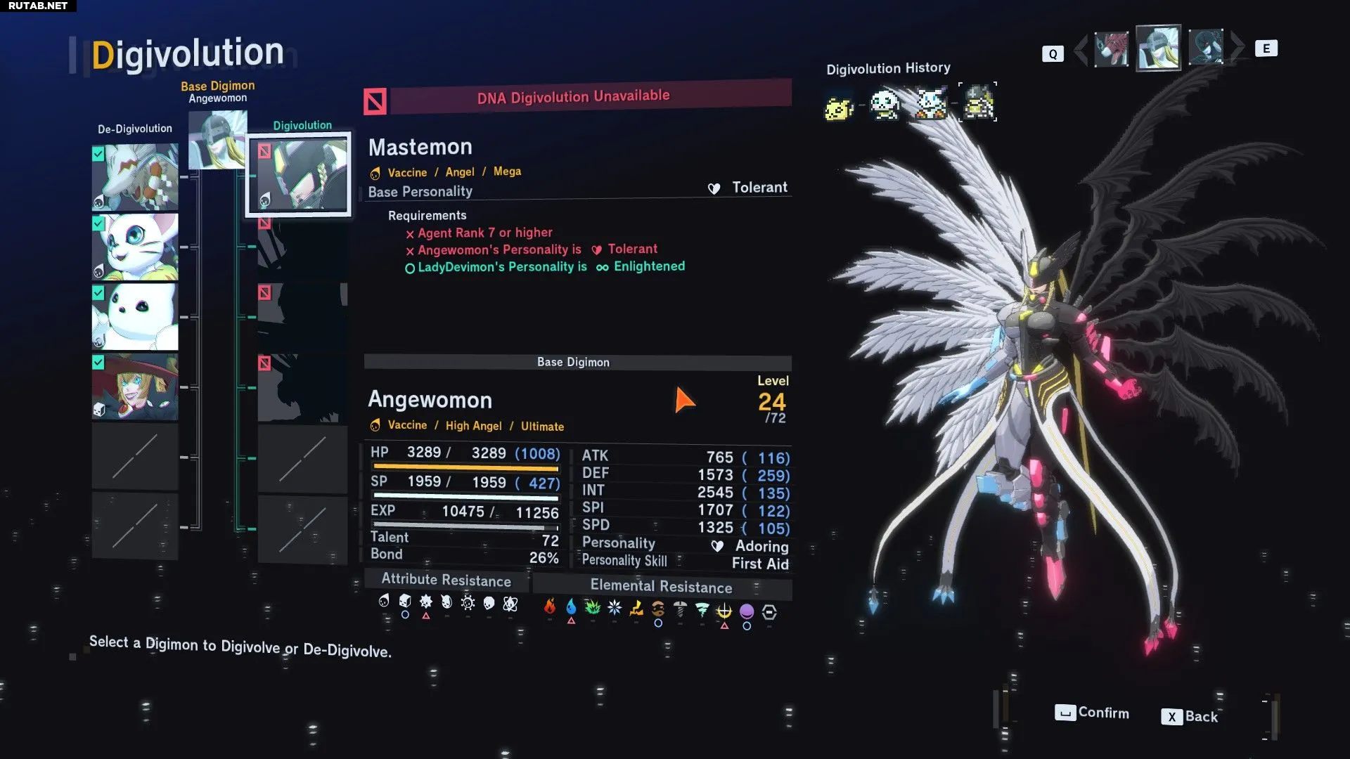 Мастемон | Анджевомон + ЛедиДевимон | Ранг Агента 6+; Анджевомон + ЛедиДевимон в группе | Ранг Агента 7+; Анджевомон (Терпимый) + ЛедиДевимон (Просветлённый) |