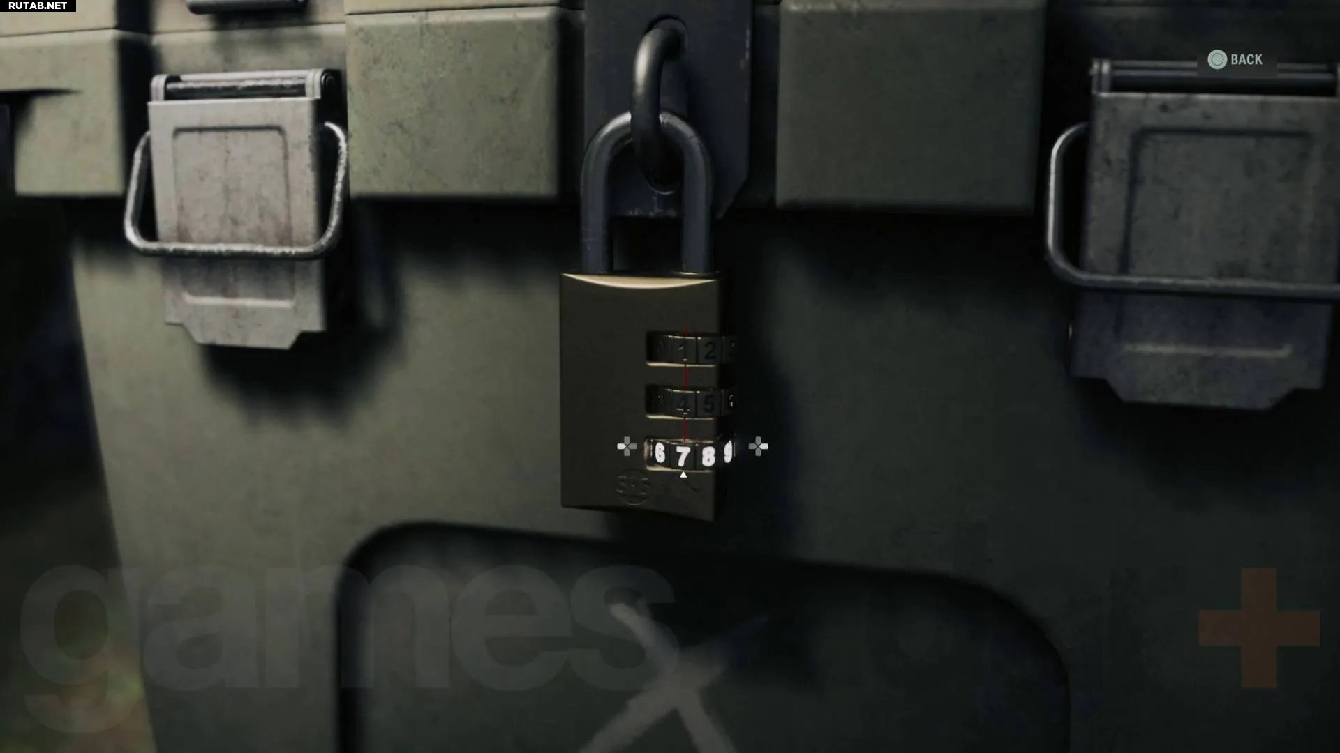 От предыдущего тайника продолжайте движение по основной тропе, и вы легко заметите хижину Break Room на западной стороне пути. Снаружи этой хижины находится стрельбище с арбалетами, а под деревянным навесом вы найдёте культовый тайник. Этот тайник закрыт на трёхзначный кодовый замок. Посмотрите на пронумерованные мишени справа от навеса с воткнутыми в них болтами арбалета — количество болтов в каждой мишени определяет порядок цифр кода. Код получается 5 2 7. Введите его, чтобы открыть тайник и получить арбалет для Саги.