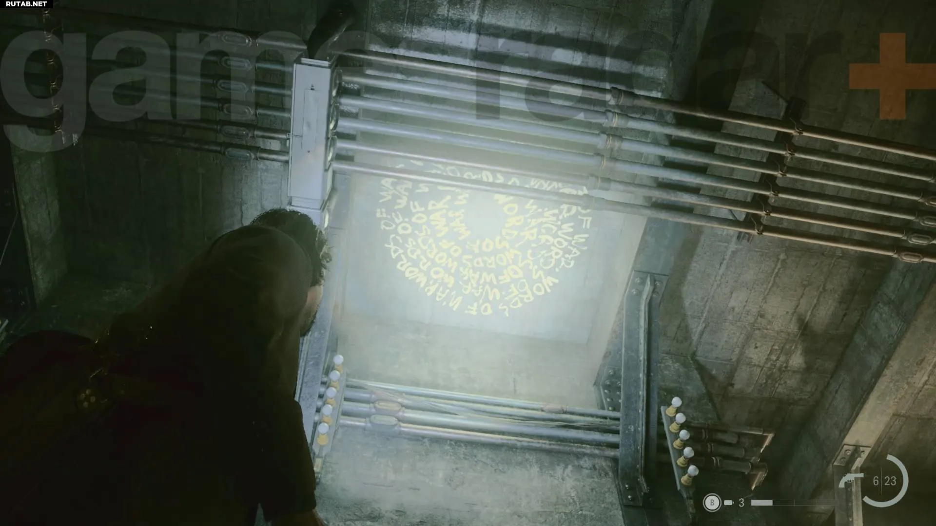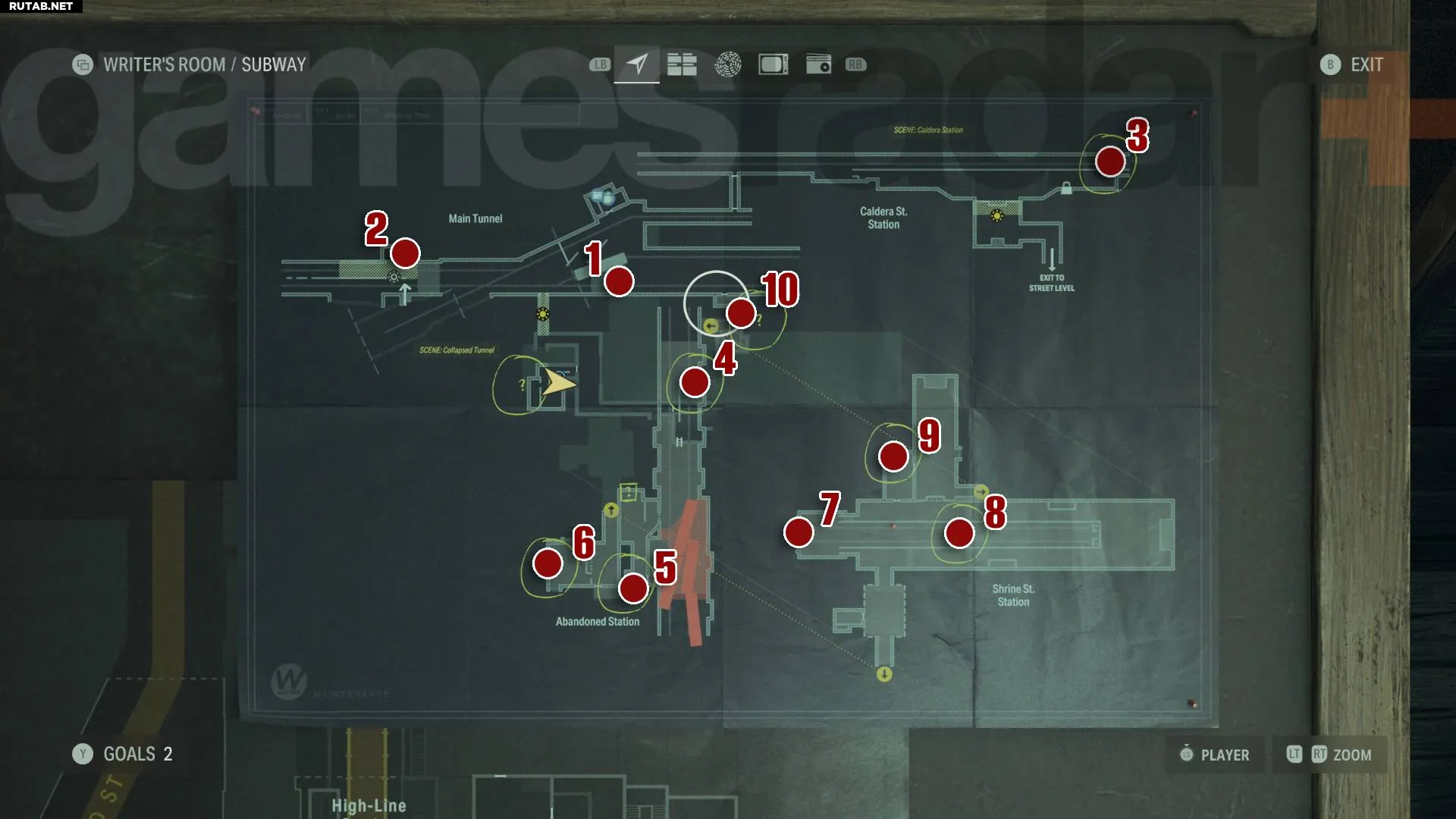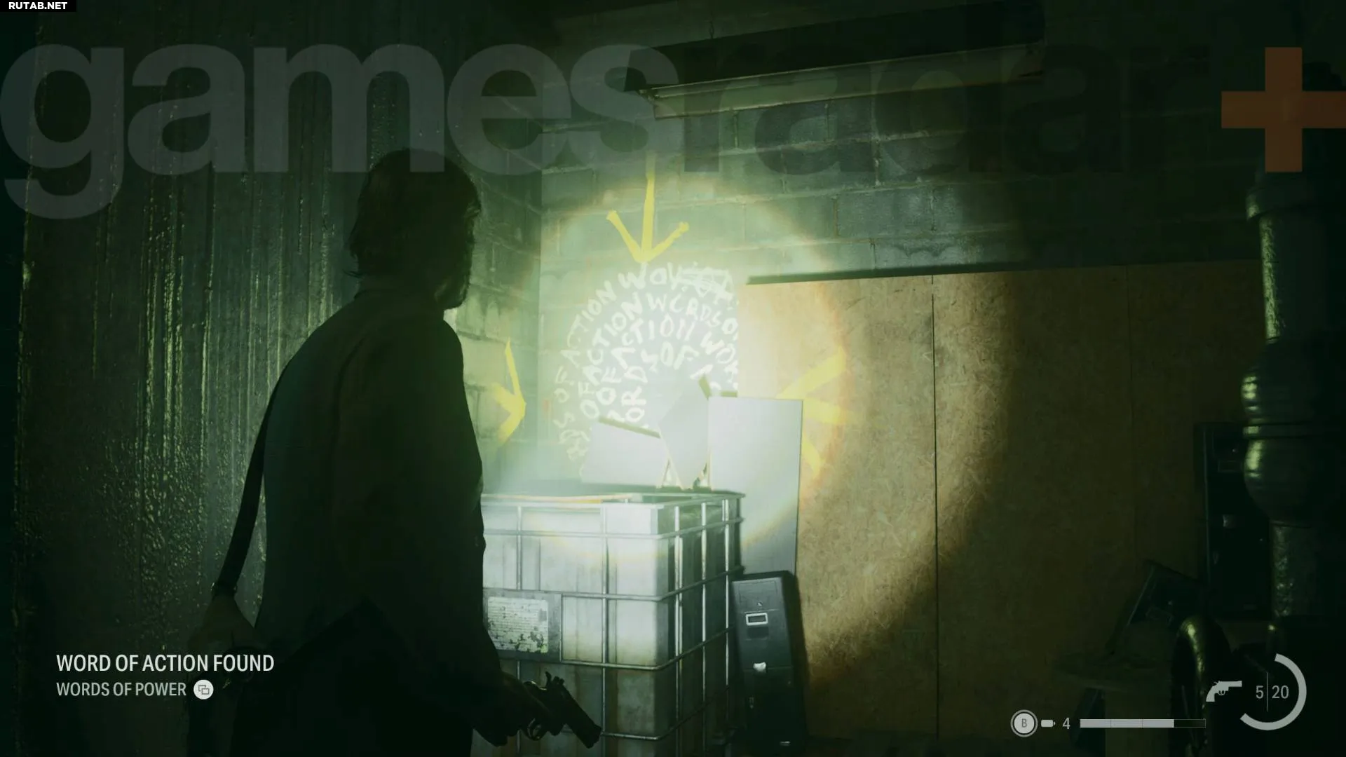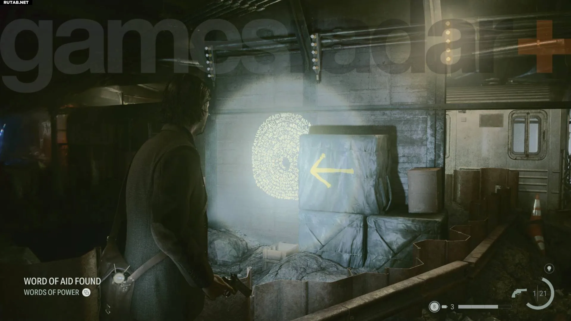 В метро можно найти несколько Слов Силы, но это запутанное место с множеством событий, поэтому их легко пропустить, пока вы решаете различные головоломки для продвижения (особенно сложным моментом является ритуал в метро Alan Wake 2). Персонаж, который может отмечать вашу карту, снова появляется здесь, в месте, указанном жёлтой стрелкой на изображении выше.