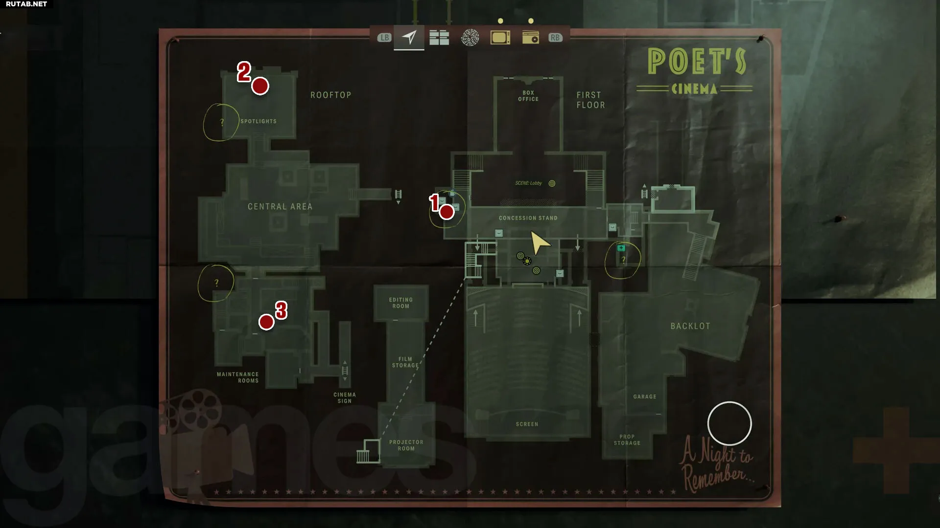 Галерея ниже поможет вам лучше определить расположение всех Слов Силы в отеле «Поэтс Синема», показанных на карте выше.