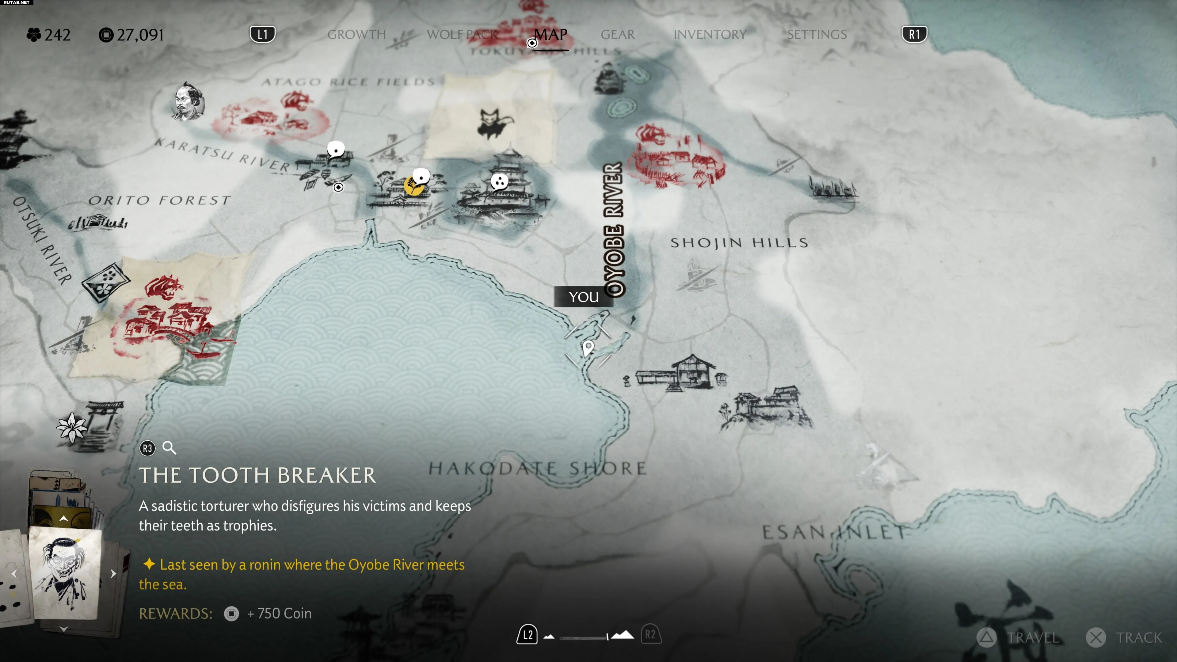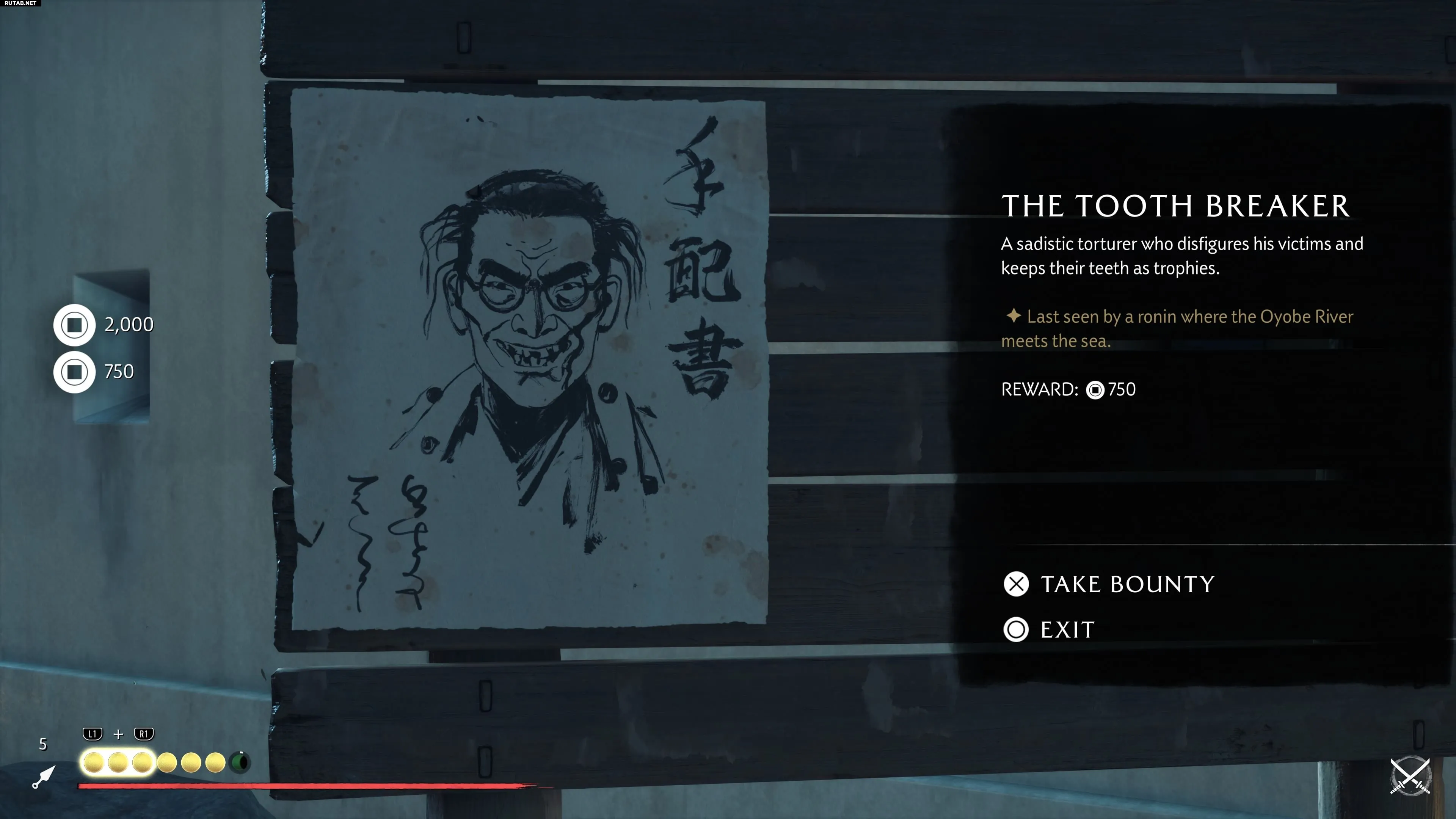 На доске объявлений замка Мацумаэ игроки найдут знакомый розыскной лист, но с грубо нарисованными очками. Для начала отправляйтесь на юг от реки Оёбэ к береговой линии, чтобы найти ронина, который направит вас южнее побережья Хакодатэ к дому Безумного Горо. Продолжайте выполнение квеста, чтобы завершить задание.