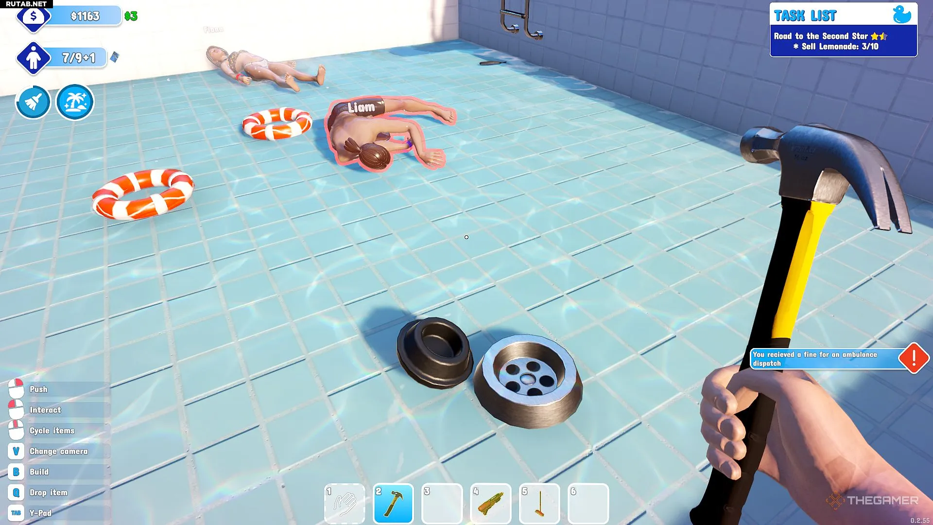 С помощью молотка вы можете починить бассейн и вернуть его в рабочее состояние, но не забудьте как можно скорее наполнить его водой.