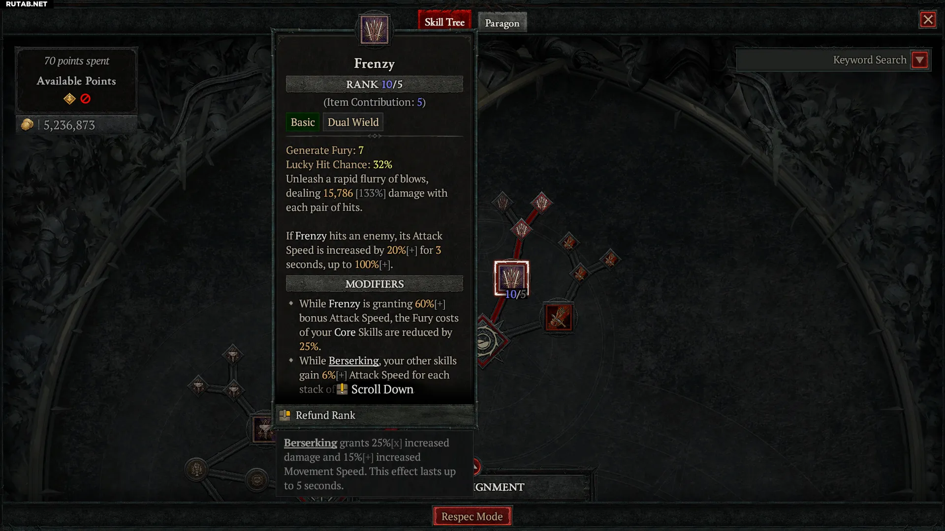 Доски Парагона для билда на прокачку с Frenzy в Diablo 4