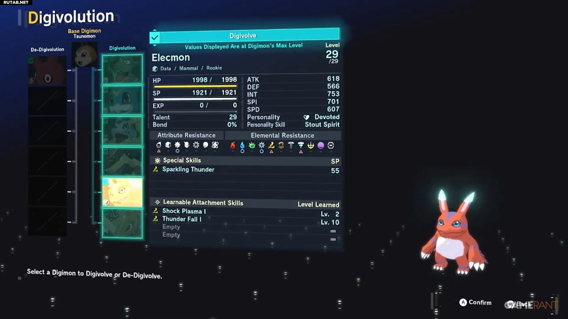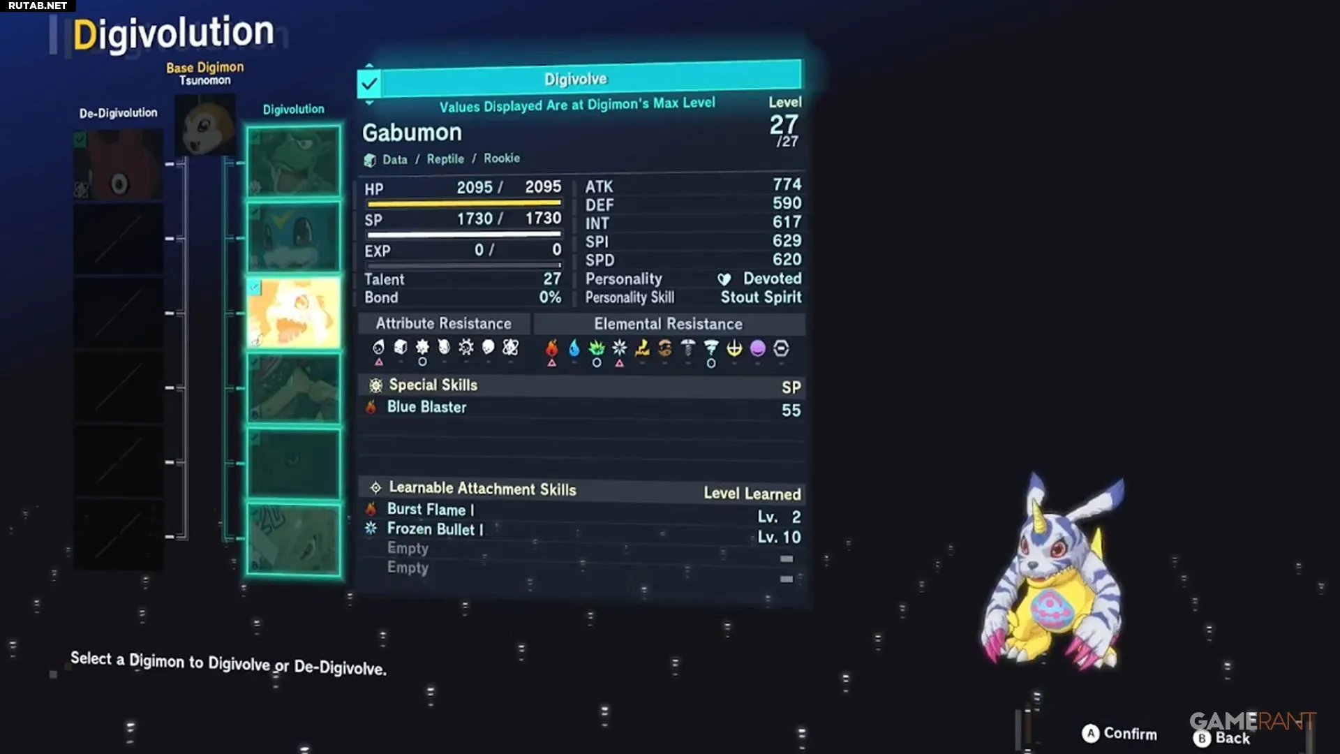 Остальные три дигимона тоже достойны внимания: Элекмон наносит самый высокий магический урон, Габумон сбалансирован по характеристикам, а Рюдамон отличается высокой живучестью.