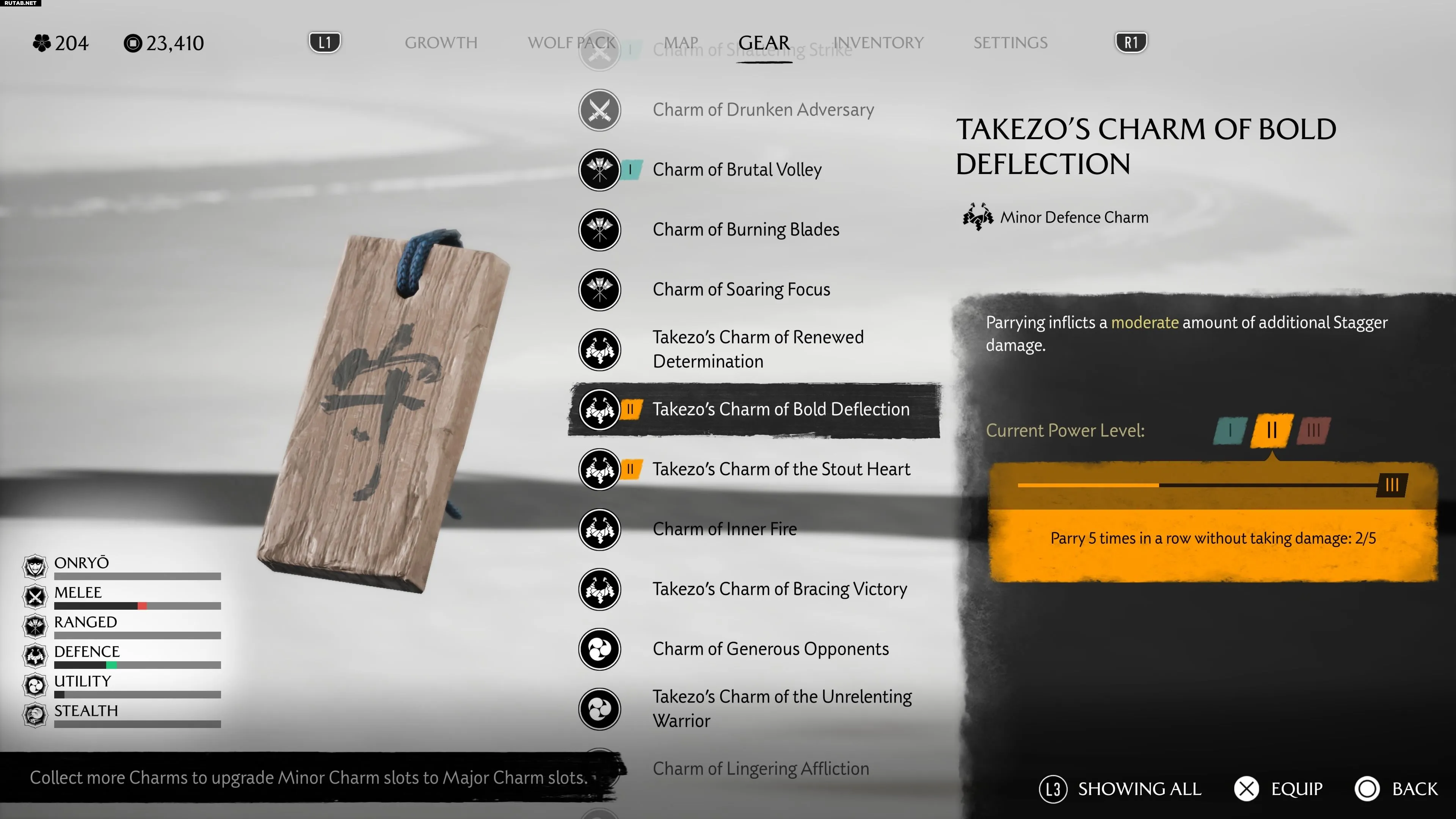 Амулеты для ближнего боя расширяют окно парирования, увеличивают здоровье Ацу и дают другие бонусы для сражения в ближнем бою. Эти амулеты крайне важны для освоения идеальных парирований и получения связанных с ними наград: