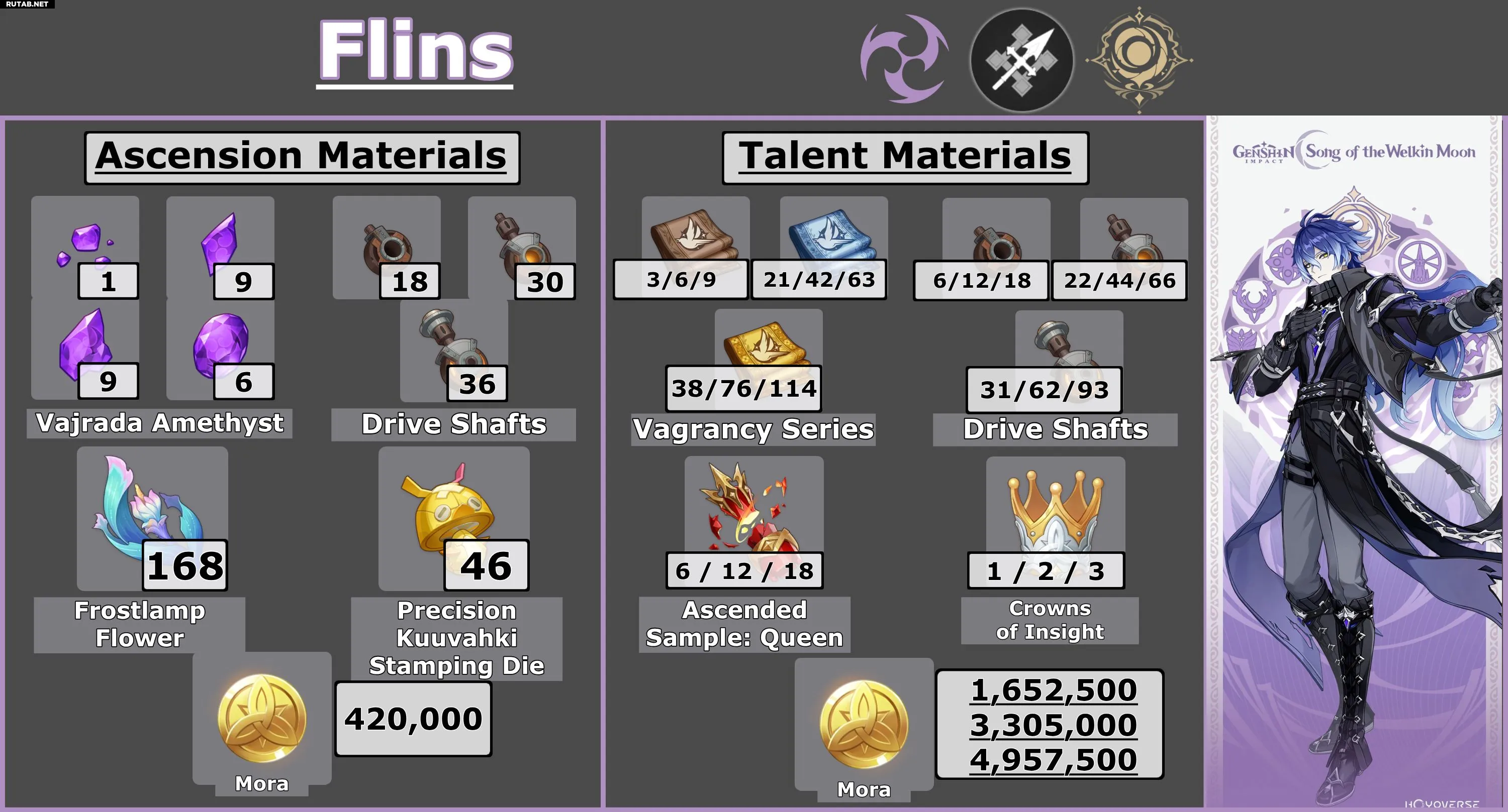 Полное руководство по материалам для Возвышения и талантов Флинса в Genshin Impact