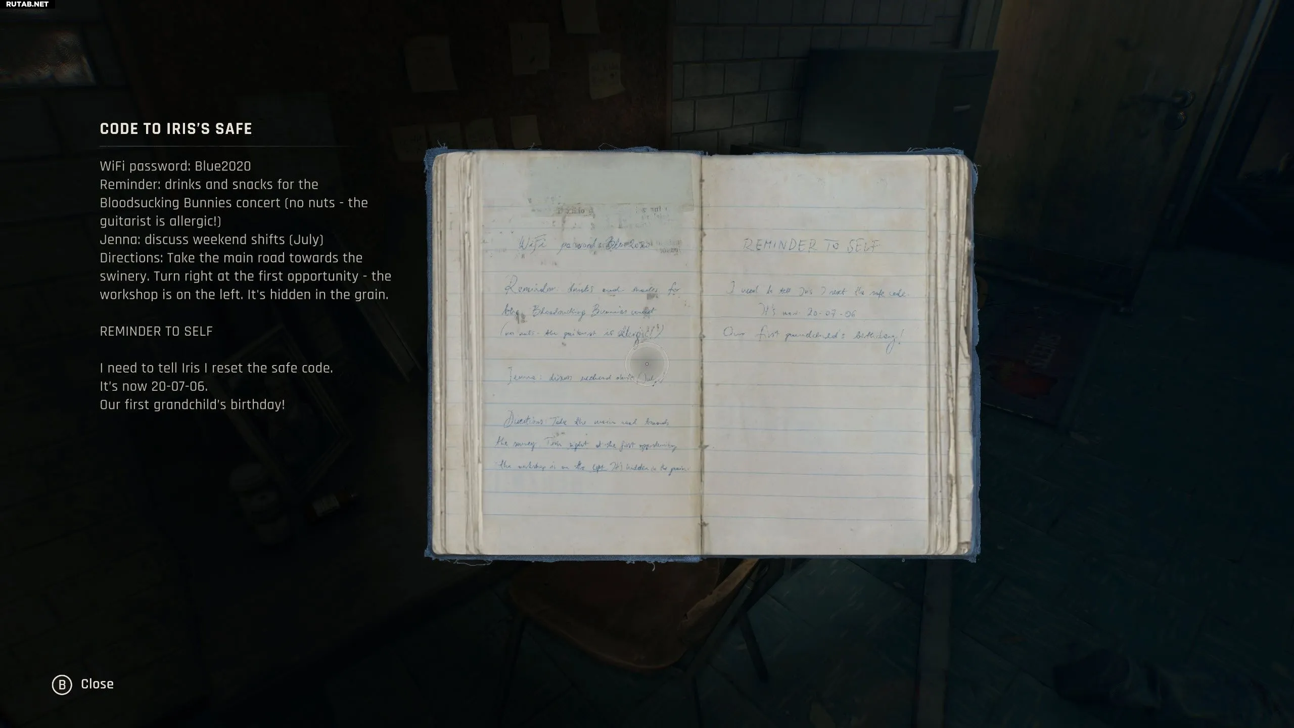 В комнате вы найдёте несколько предметов для сбора и запертый сейф на книжной полке. Код от сейфа неизвестен. После разговора с Амелией она направит Кайла в магазин мужа Ирис в Старом городе.