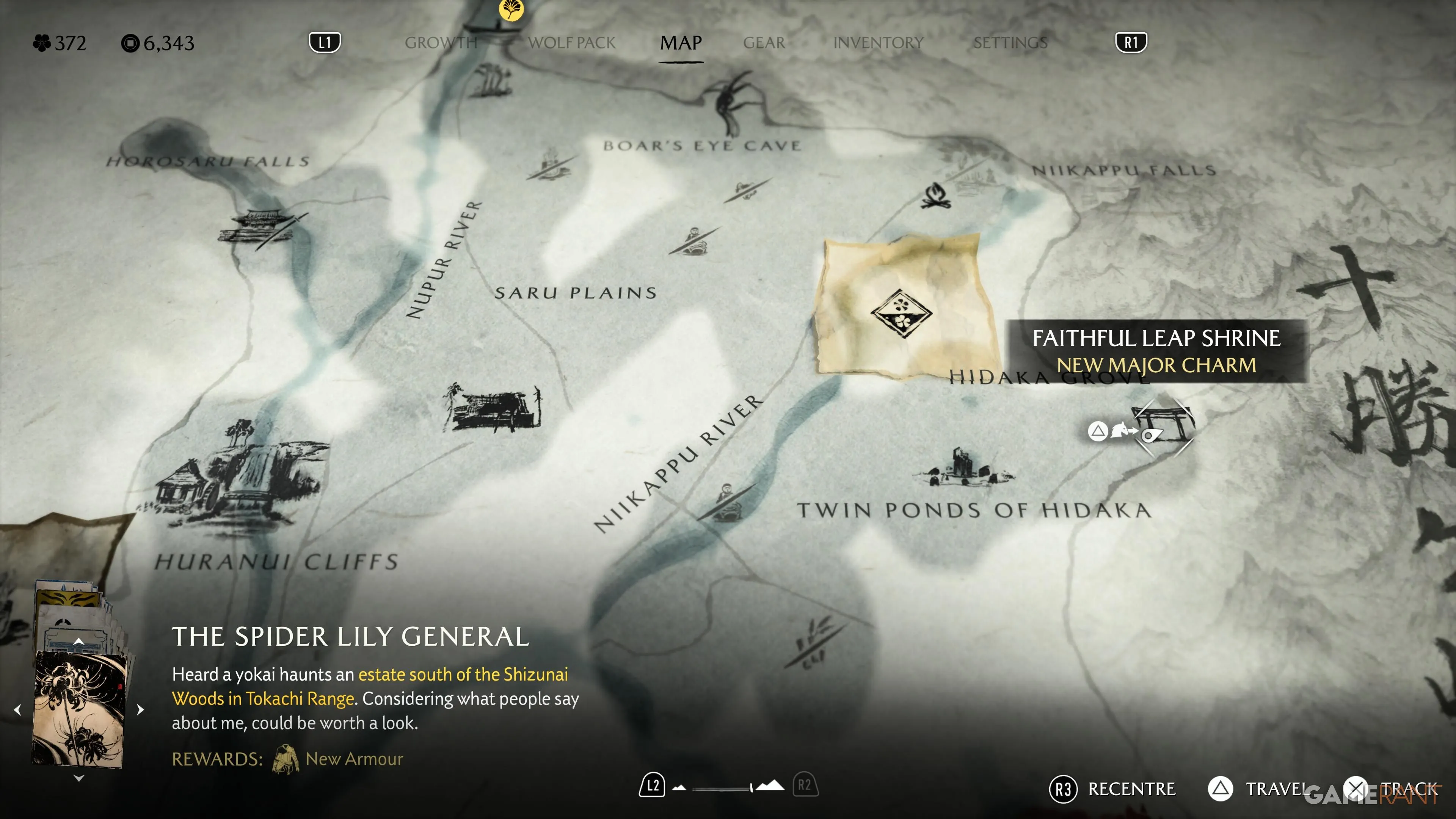 Это единственное восхождение к святилищу в регионе Дикие Земли Наёро, расположенное к северу от Гор Ивор. Здесь у вас будет открыто несколько точек быстрого перемещения, если вы проходили через этот регион для доступа к Хребту Тесио в рамках квестовой линии Кицунэ. |