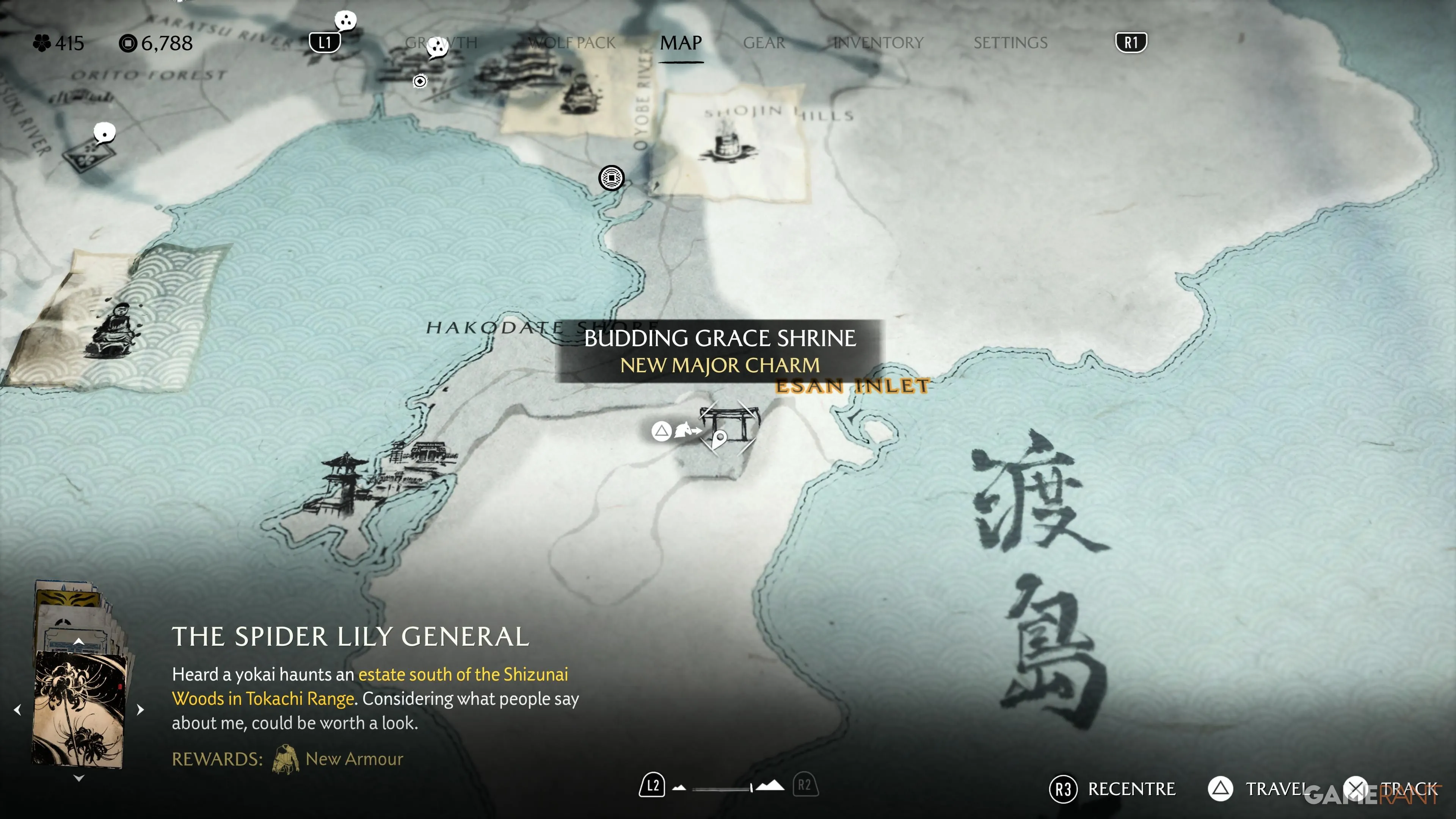Это святилище находится в регионе Побережье Осима, который становится доступен только после прохождения квестовых линий Кицунэ и Они, а также выполнения заданий братьев Сайто. После определённого сюжетного отрезка вы сможете свободно исследовать регион и отправиться на юг, в район Залива Эсан, где расположен вход к святилищу. |