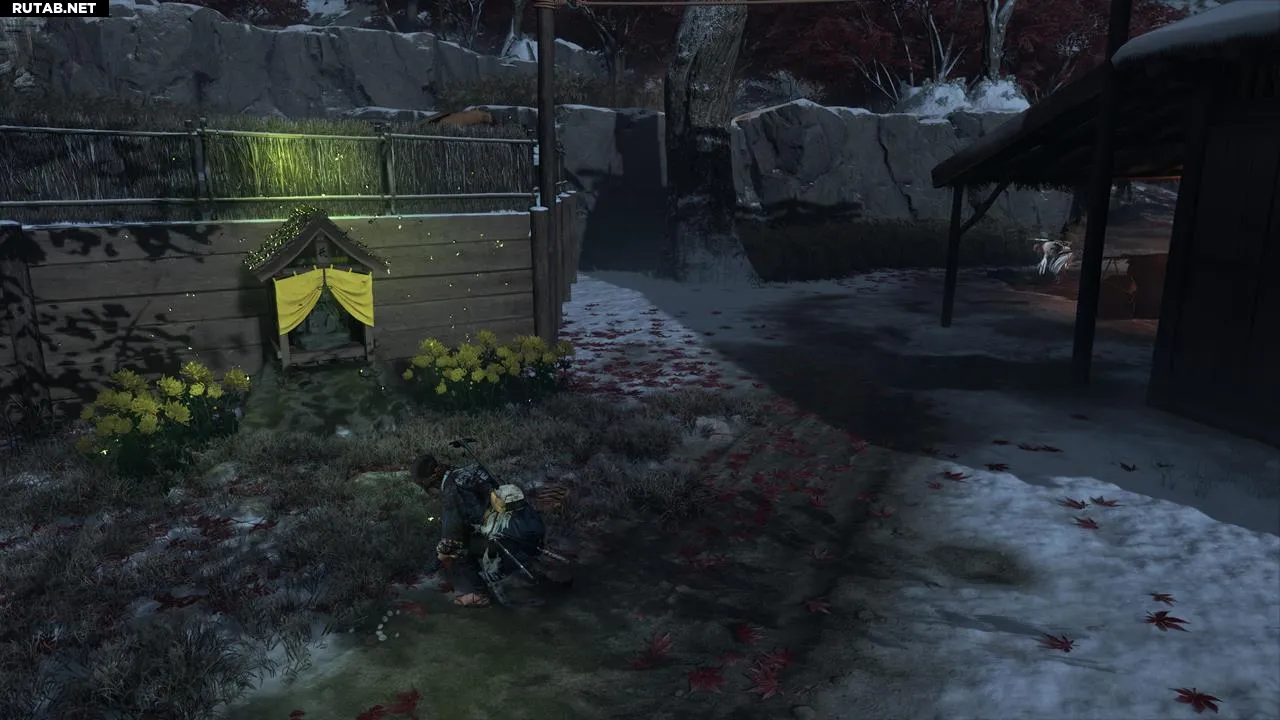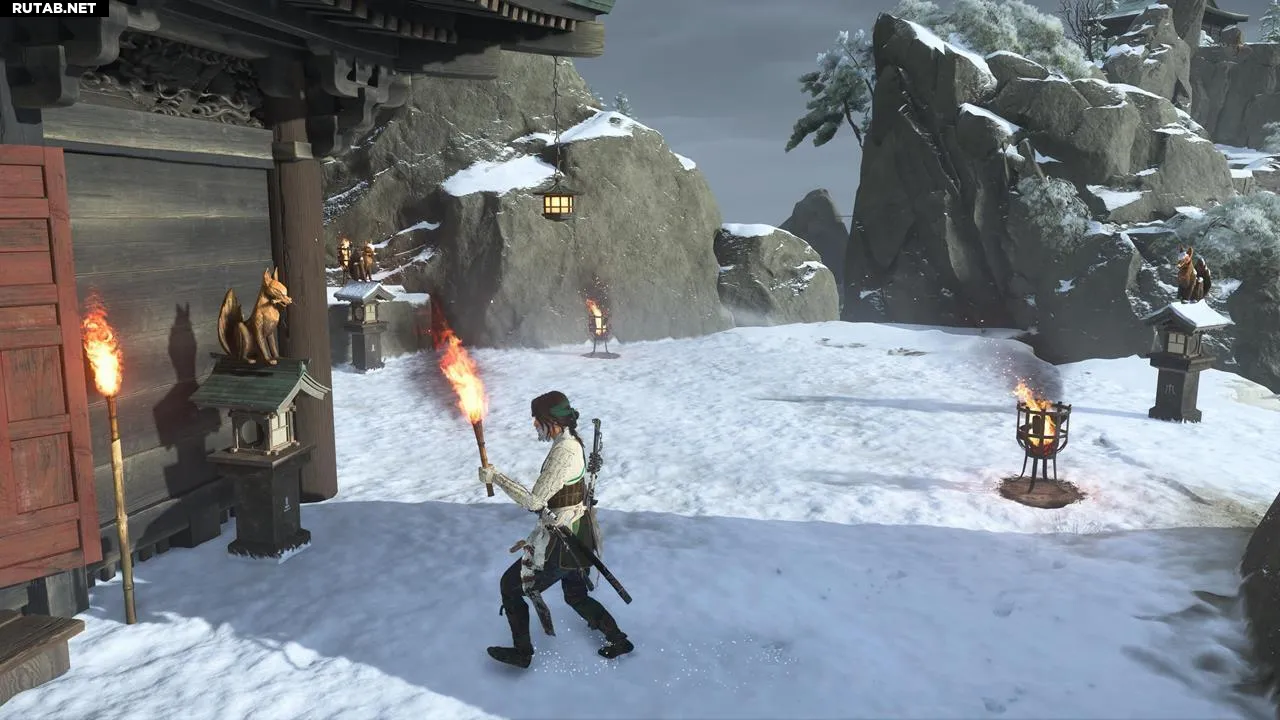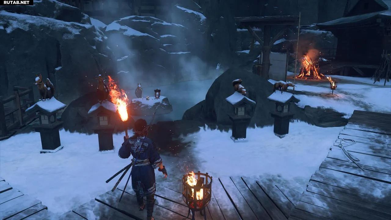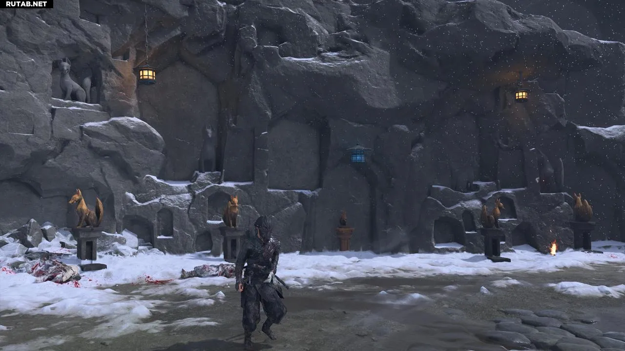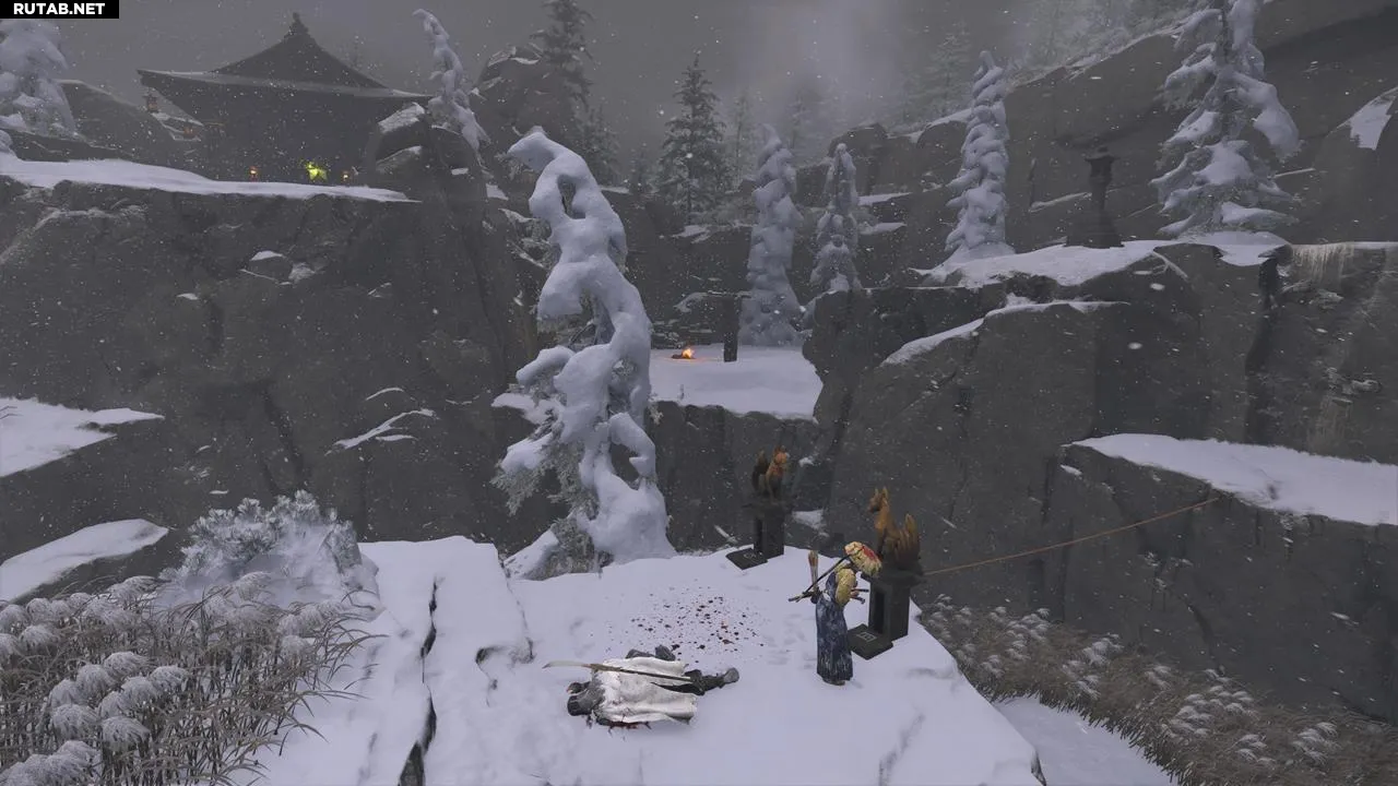 - После устранения врагов в укрытии «Снежные источники» нужно зажечь центральный фонарь, так как рядом с ним находится статуя лисы, лежащая плашмя.