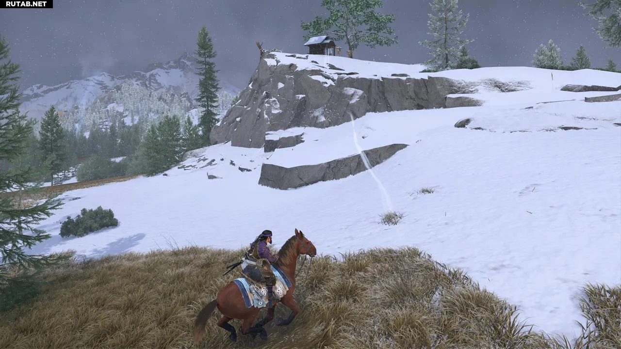 - Местоположение: Находится в лесу Саробэцу рядом с Алтарем Размышлений и заведением, связанным с побочным квестом лучника Рана. Обратите внимание, что здесь находится цель охоты по имени Снежная Буря Катагири. Как и следует из его прозвища, в этой области начинается снежная буря, которая ухудшает видимость и снижает ваше максимальное здоровье.