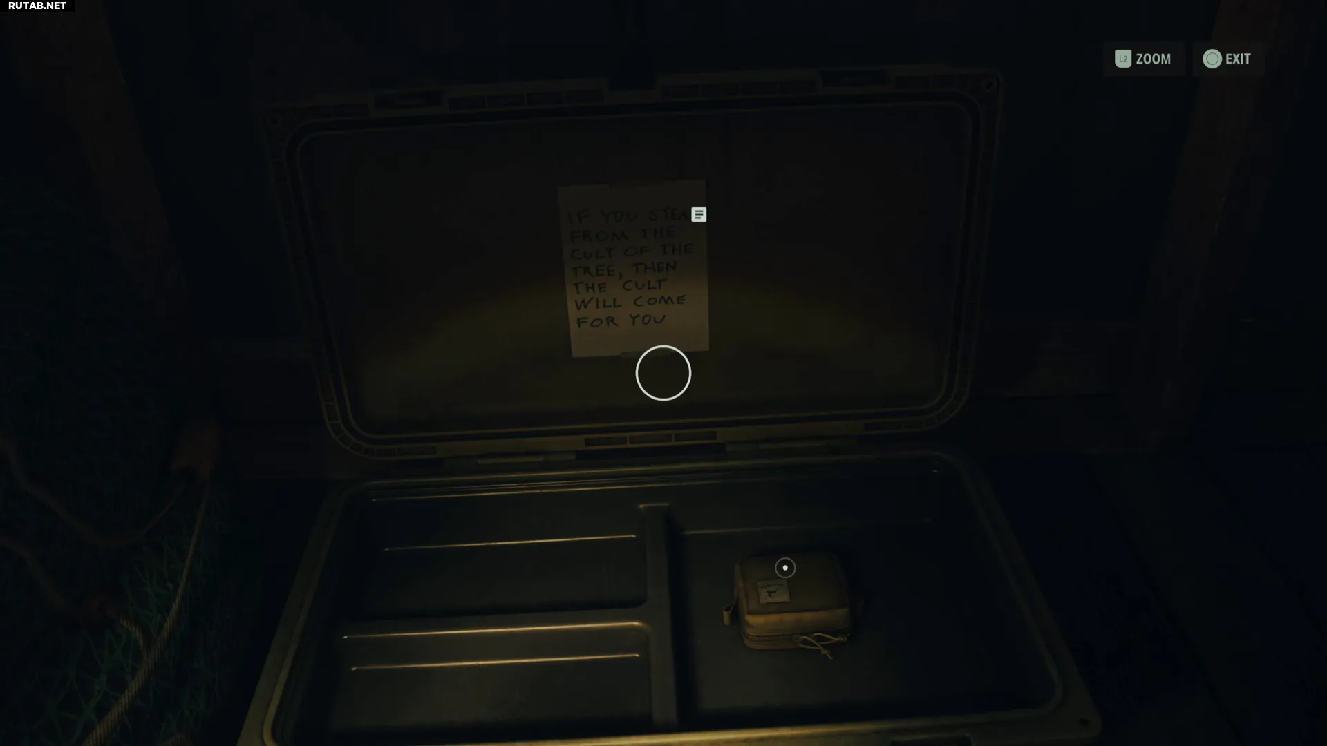 После первого «Наложения» вы окажетесь на побережье. Следуйте по восточному пути вдоль берега, пока не увидите поваленные деревья. Проползите под одним из них — там будет тайник культа. Чтобы открыть его, используйте цветовую комбинацию, которая мелькает на экране.