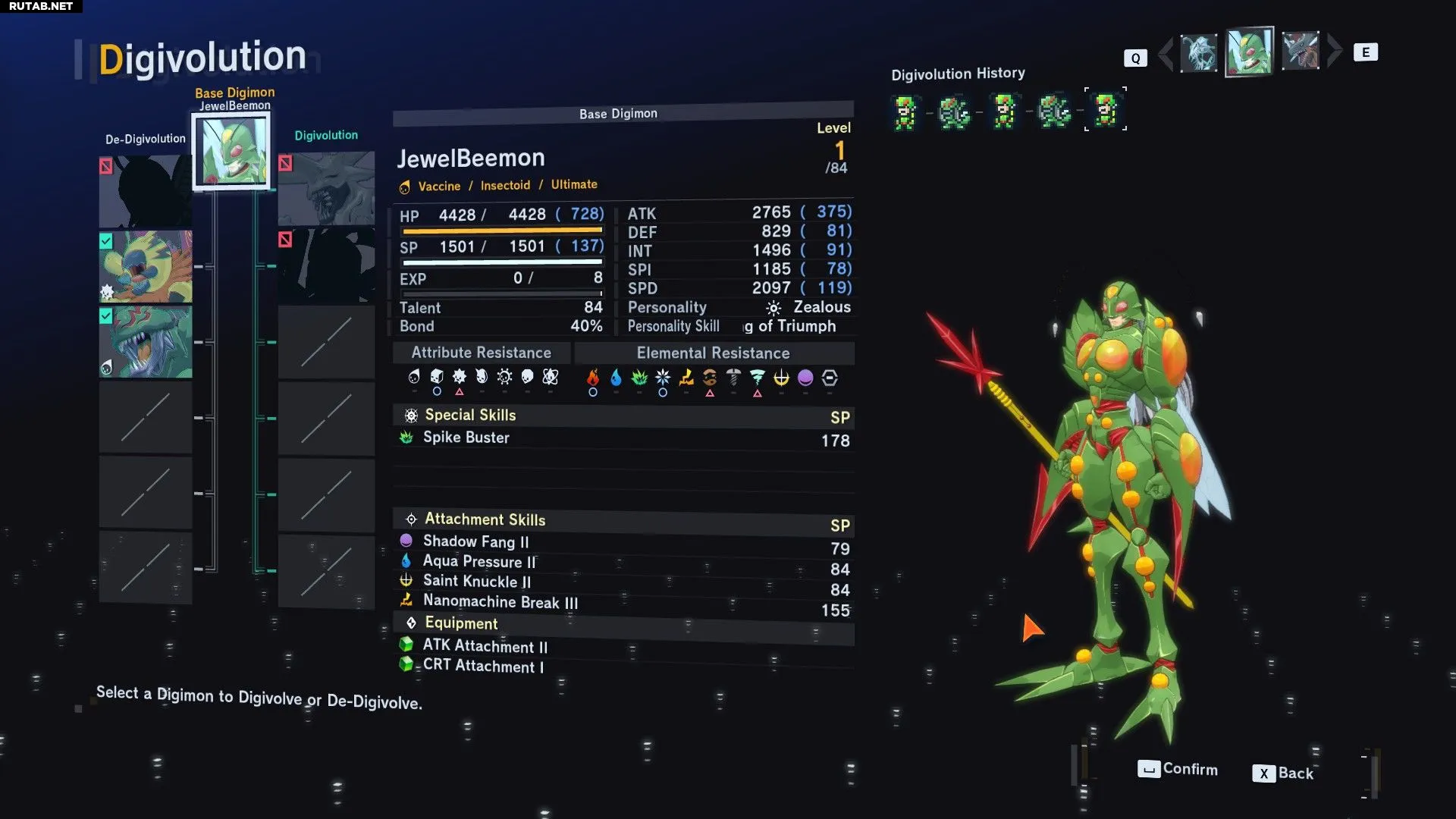 - Узы дигимона превышают количество уже проведённых дигиволюций и де-дигиволюций, так как это позволит преобразовать новые Накопительные характеристики.