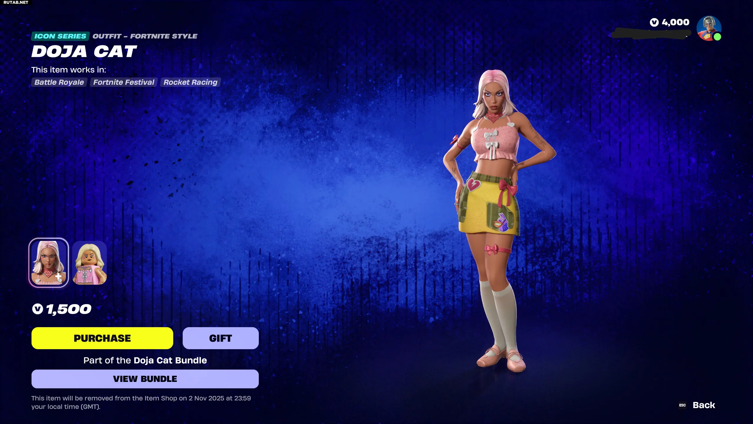 Набор Doja Cat Bundle стоит 3200 V-баксов и будет доступен до 1 ноября до 03:00 по московскому времени.
