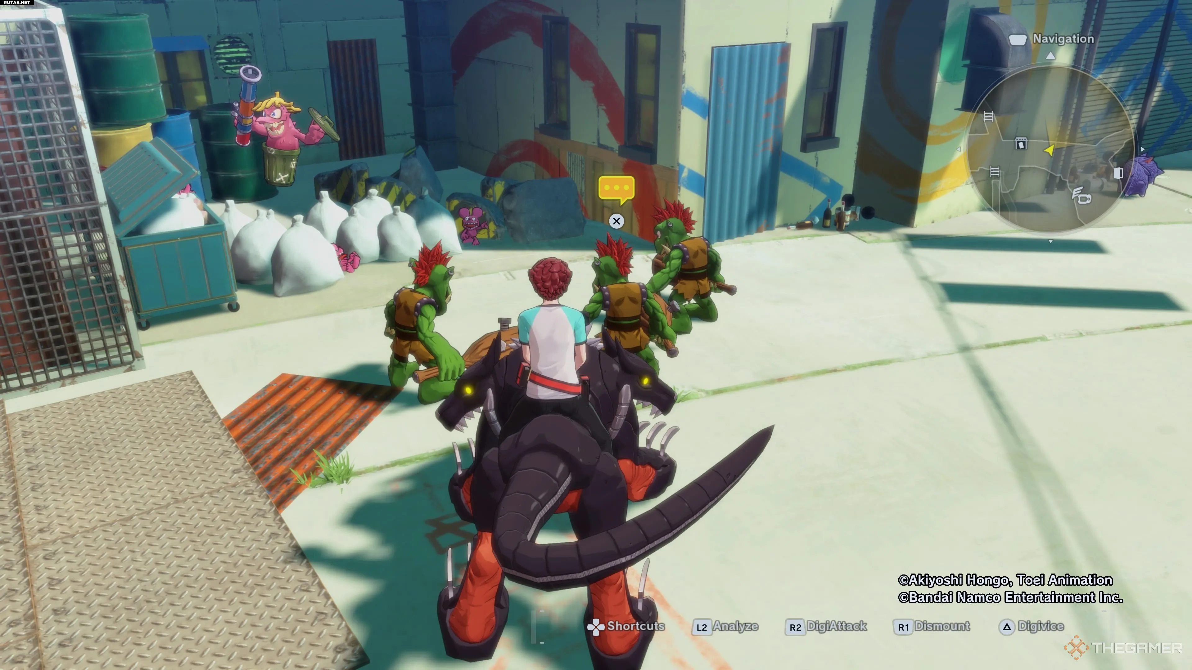 Выйдите из дома и отправляйтесь в Центральный город: Даунтаун. Там вы увидите группу из трёх Гоблимонов рядом с Бёрдрамон. Поговорите с ними, чтобы начать бой против всех троих.