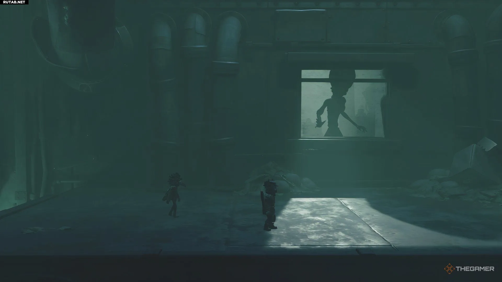 В отличие от первого уровня, с боссом этой локации вы встретитесь почти сразу. От точки старта продолжайте движение, пока не доберётесь до площадки с кнопкой, которую Алон должна ударить гаечным ключом. Двигайтесь дальше, пока не попадёте в комнату, где через небольшое окошко можно кого-то разглядеть.