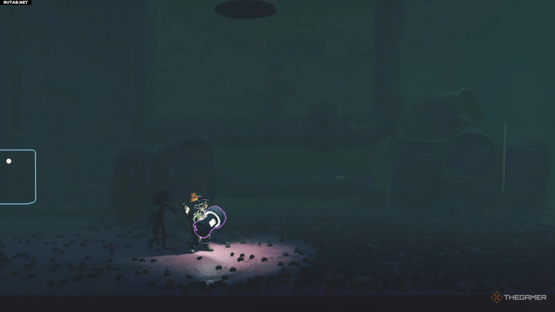 Когда вы попадёте в комнату со светящейся батареей в гнезде, вытащите её из стены — пока вы её несёте, вокруг вас будет создаваться небольшое свечение. Этот свет — единственное, что отпугивает жуков (также известных как Конфетные долгоносики) и не даёт им окружить вас. Отнесите источник света в дальний правый угол и вставьте его в гнездо, чтобы включить лампу над головой и разогнать жуков.