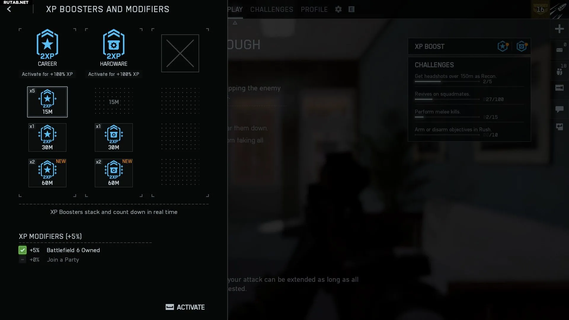 Бустеры карьеры увеличивают количество опыта, который вы получаете для основного уровня аккаунта. Если хотите быстро повышать уровень в BF6, используйте их и старайтесь набирать много очков во время матча, чтобы максимально эффективно использовать бустер.
