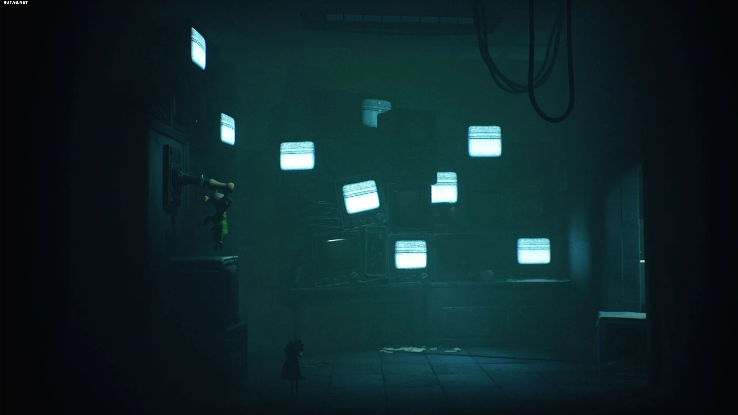 Затем Лоу поможет Элоун запрыгнуть на стопку телевизоров и дотянуться до рычага. Дерните его — все экраны погаснут. Вернитесь в коридор: теперь дверь свободно открывается, так как камера деактивирована.