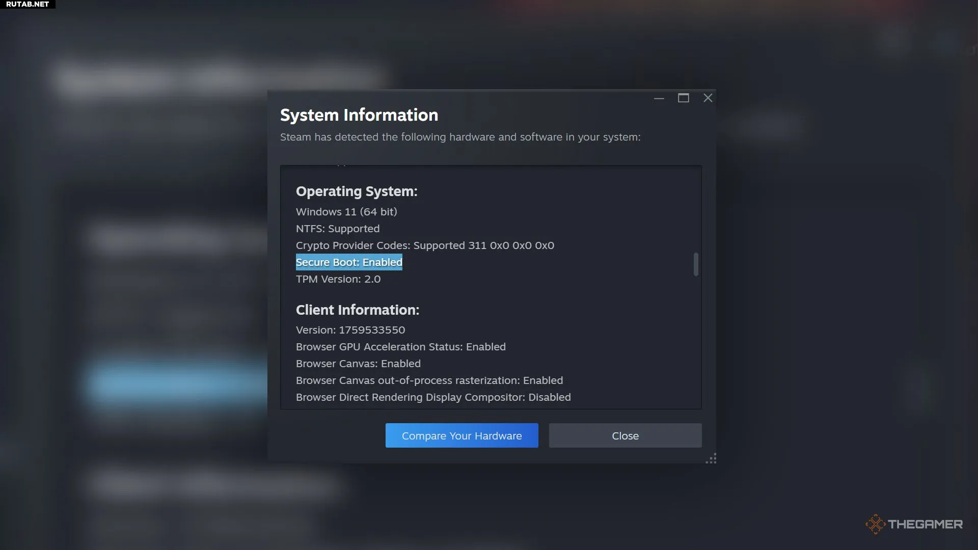 Перед началом стоит проверить, активирован ли Secure Boot. Это можно сделать через поиск «Безопасность устройства» в Windows или открыв вкладку «Справка» в Steam и выбрав «Сведения о системе» — оба способа покажут статус Secure Boot.