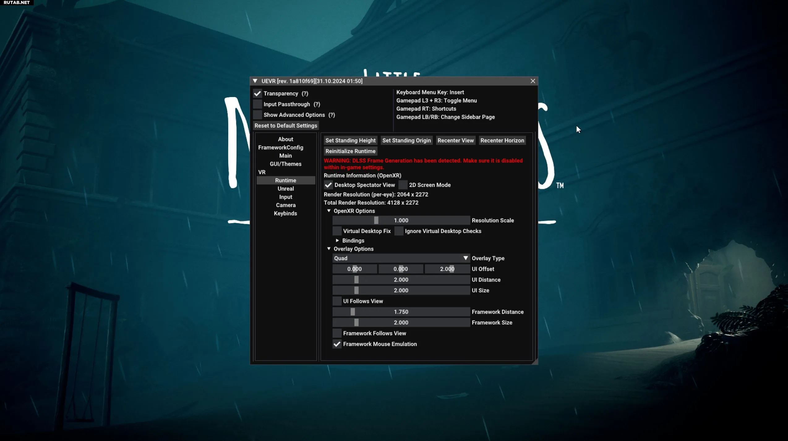 Данное руководство ориентировано на игру на виртуальном плоском экране с стереоскопическим 3D, как на старых 3D-мониторах. Мод UEVR поддерживает полноценный VR с отслеживанием головы и контроллерами, но мы отключим эти функции. Ничто не мешает вам играть с отслеживанием, однако игра не рассчитана на подвижную камеру. Если смотреть в сторону, можно увидеть пространство за пределами игрового мира, что разрушает погружение. Но некоторым такой способ может показаться более удобным.