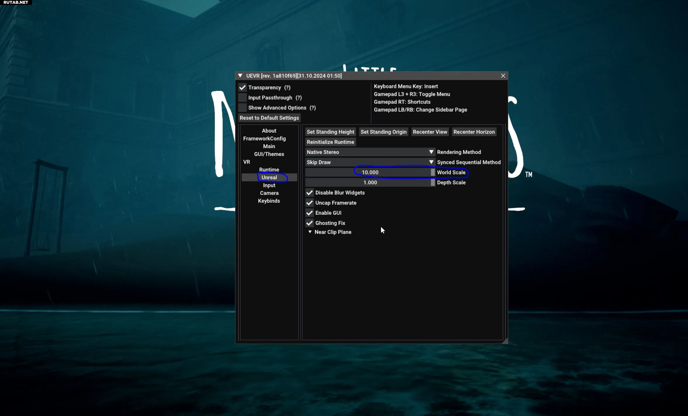В меню UEVR есть несколько способов управления глубиной для 2D-экрана: UI distance и UI size.