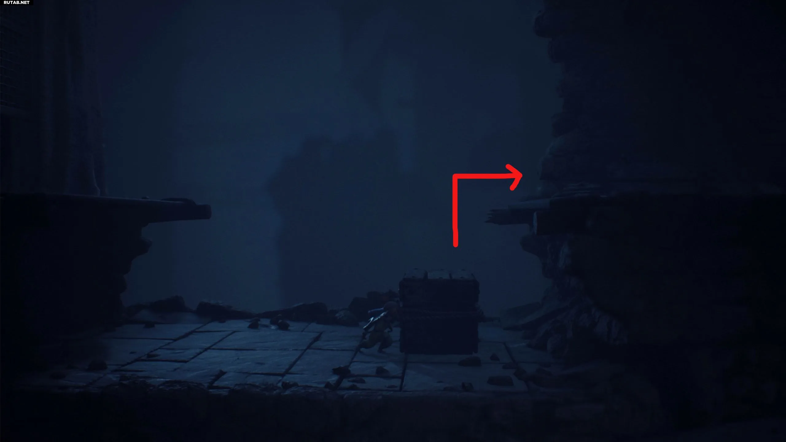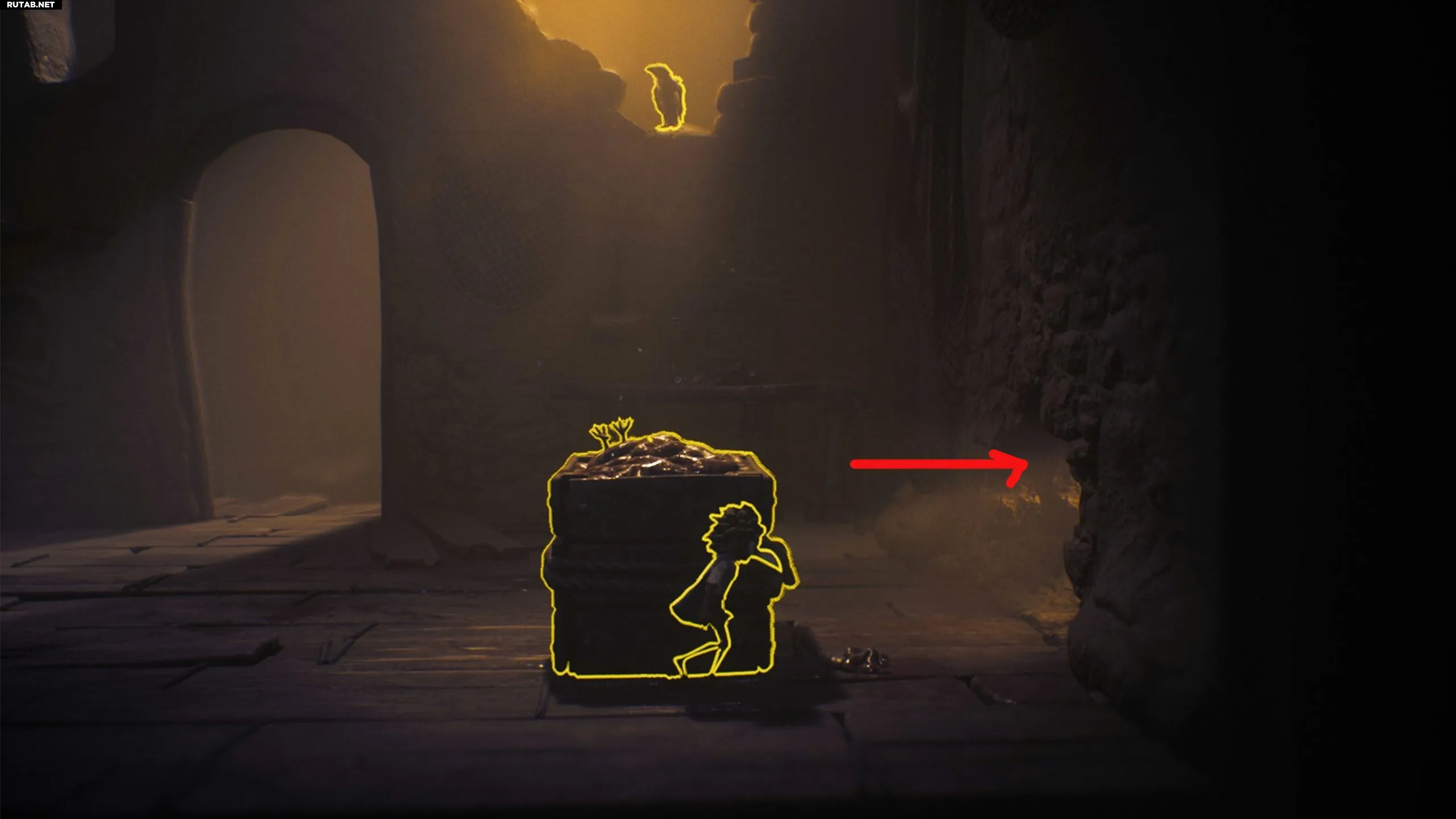 В следующей комнате, если потянуть ящик из левого угла, появится младенец. После небольшой кат-сцены продолжайте тащить ящик, чтобы забраться на высокую платформу.