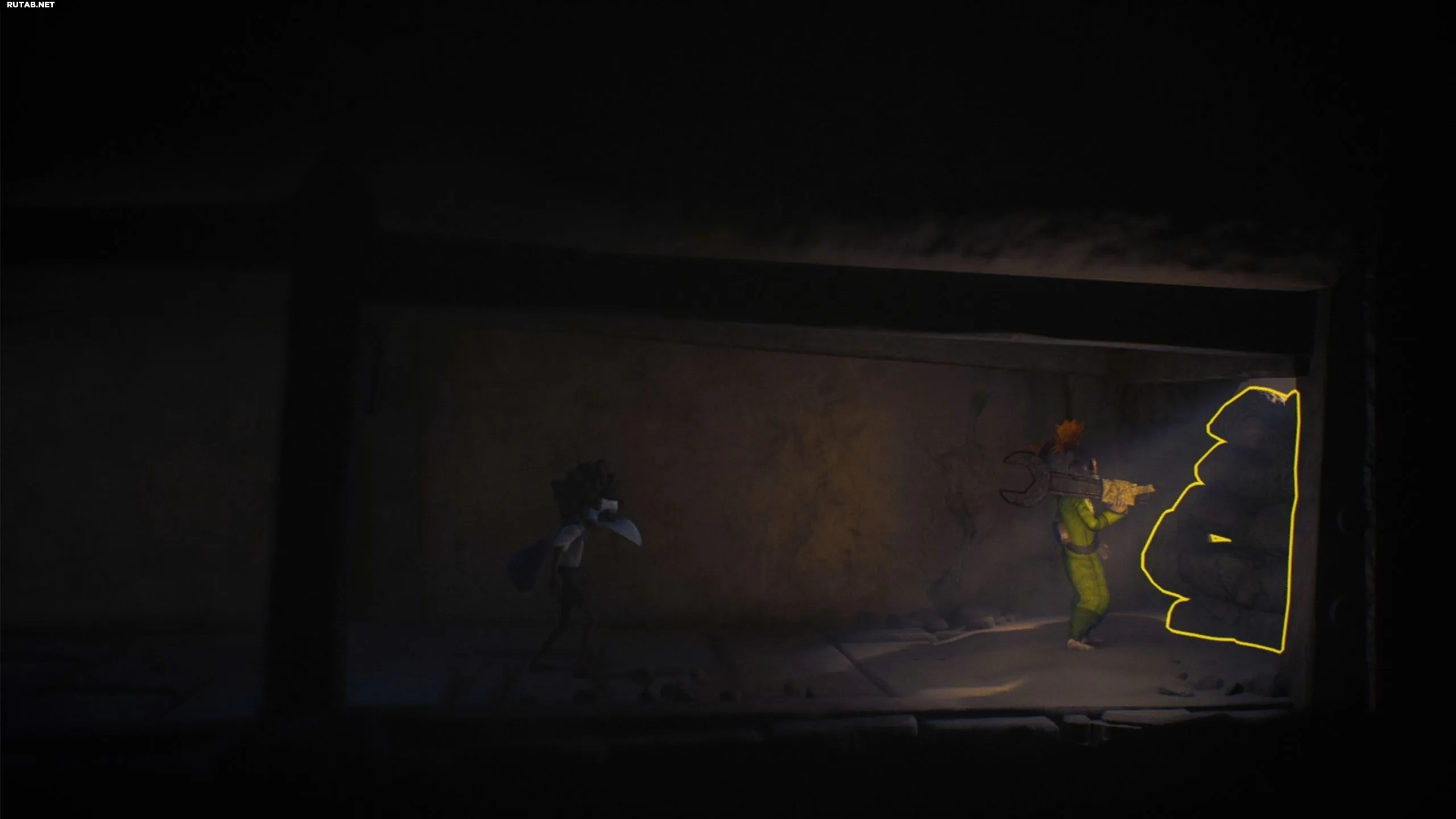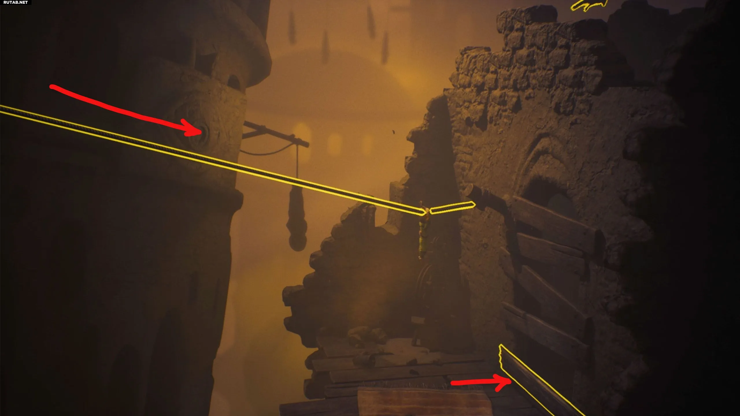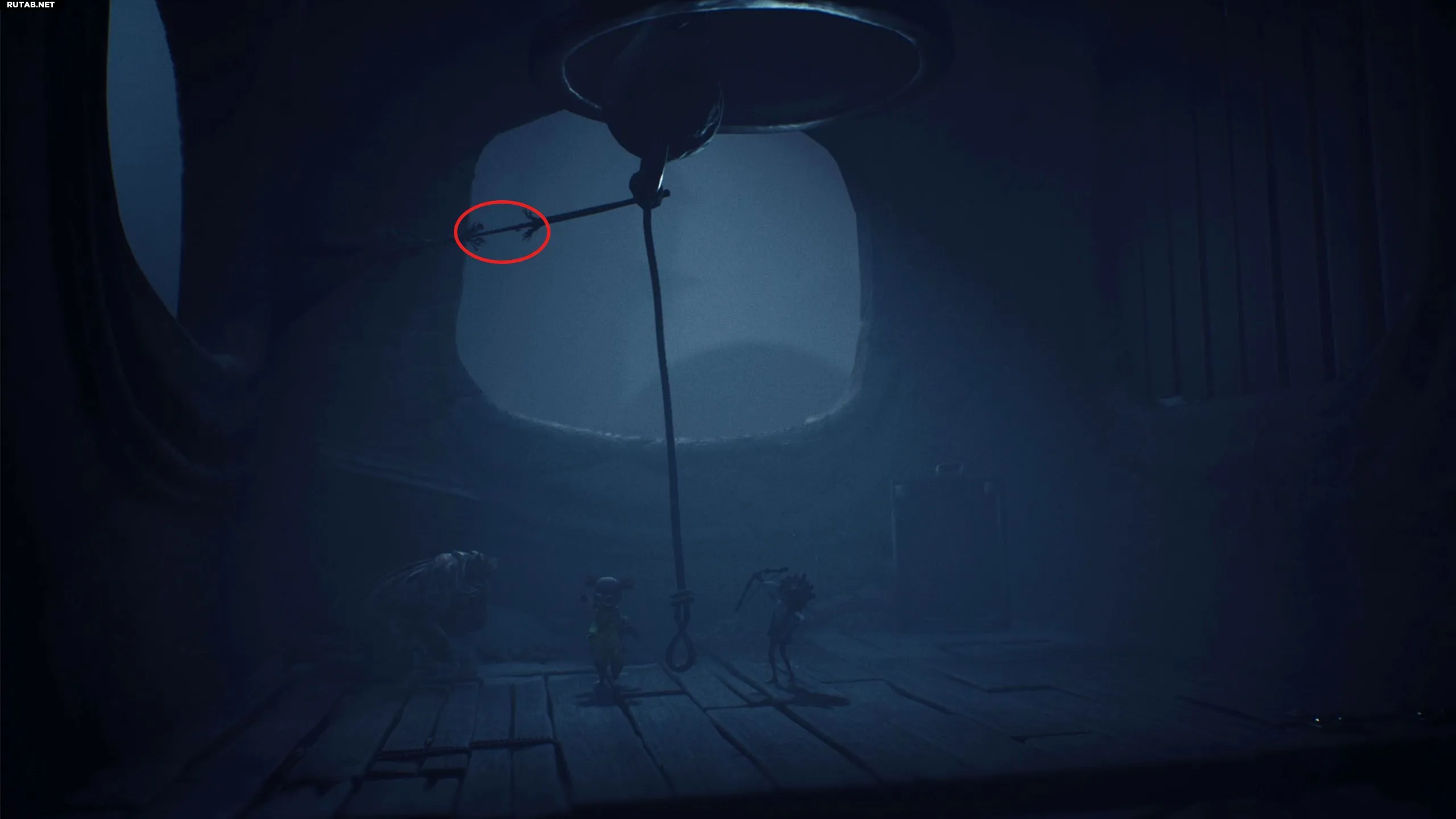 Осторожно идите по доскам и пролезьте через следующий проём. Используйте гаечный ключ Алон, чтобы повернуть рычаг — это позволит Лоу перебраться на другую сторону и выстрелить в верёвку.