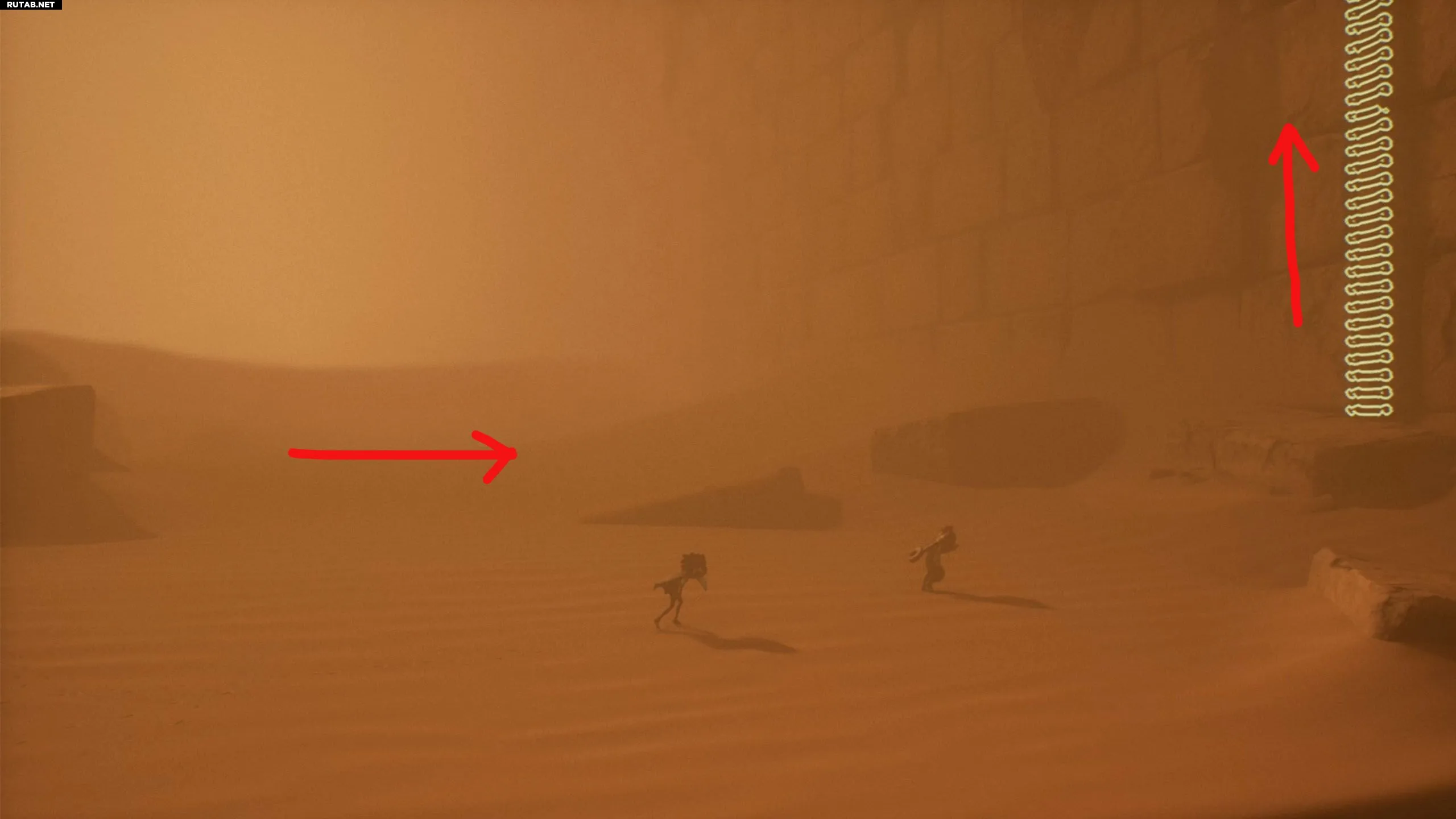 Перейдите мост и спрыгните вниз, чтобы пересечь пустыню. Поднимитесь по лестнице и позвольте Алон разрушить камни в конце туннеля.