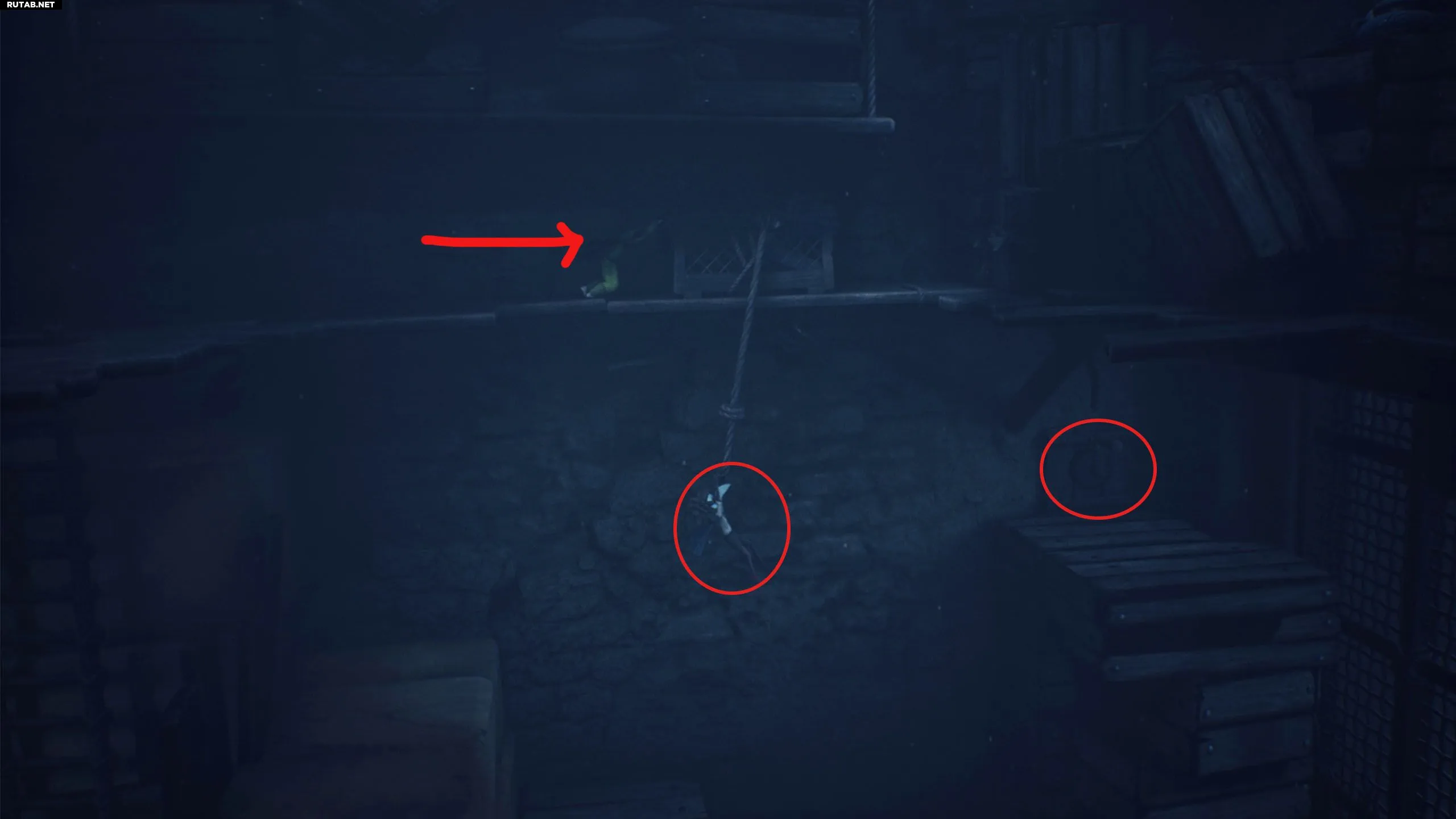 Лоу поднимет Алон, и ей нужно подтащить ящик с висящей верёвкой ближе к нему. Лоу повиснет на верёвке и будет раскачиваться, чтобы добраться до рычага и открыть дверь.