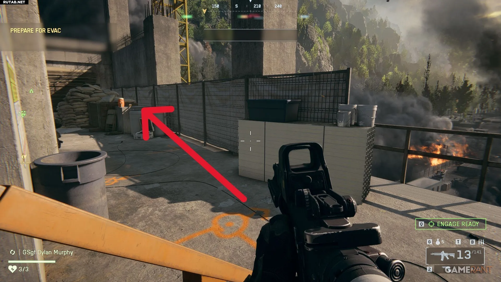 После сбора второго жетона отряд поднимется на крышу. Приземлившись, поверните налево и идите к большому оранжевому диспенсеру с кофе на бетонной плите.