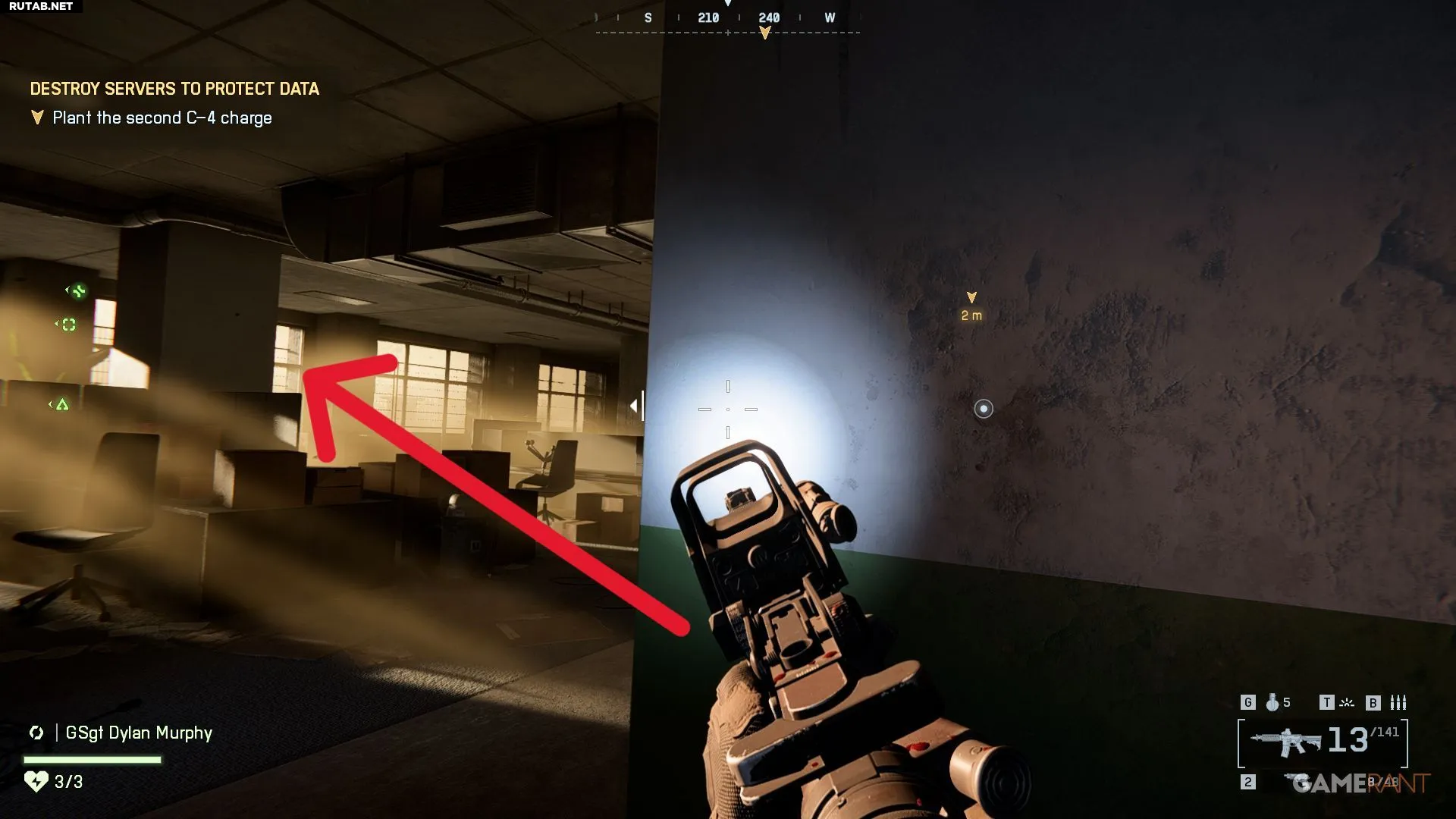 Второй жетон находится внутри центра обработки данных. После установки первого заряда C4 на нижнем уровне отряд поднимется по лестнице.