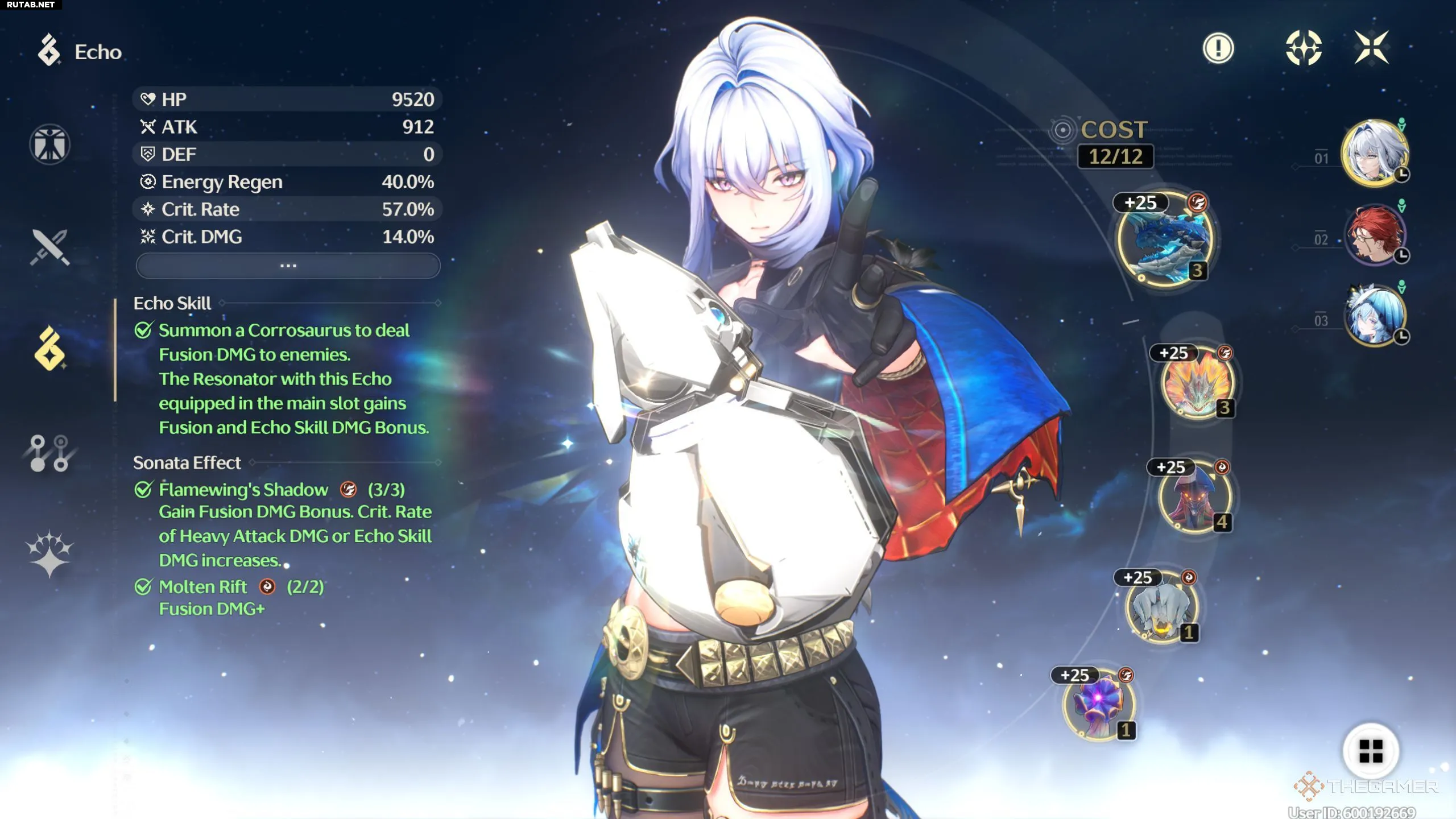 Коррозавр — это трёхочковое Эхо из набора «Тень Огненного Крыла», и это единственное главное Эхо, которое стоит использовать на Галбрене, так как оно даёт идеальные эффекты и входит в её рекомендуемый набор. При экипировке вы получаете 12% бонус к урону Плавлением и урону навыка Эхо. |