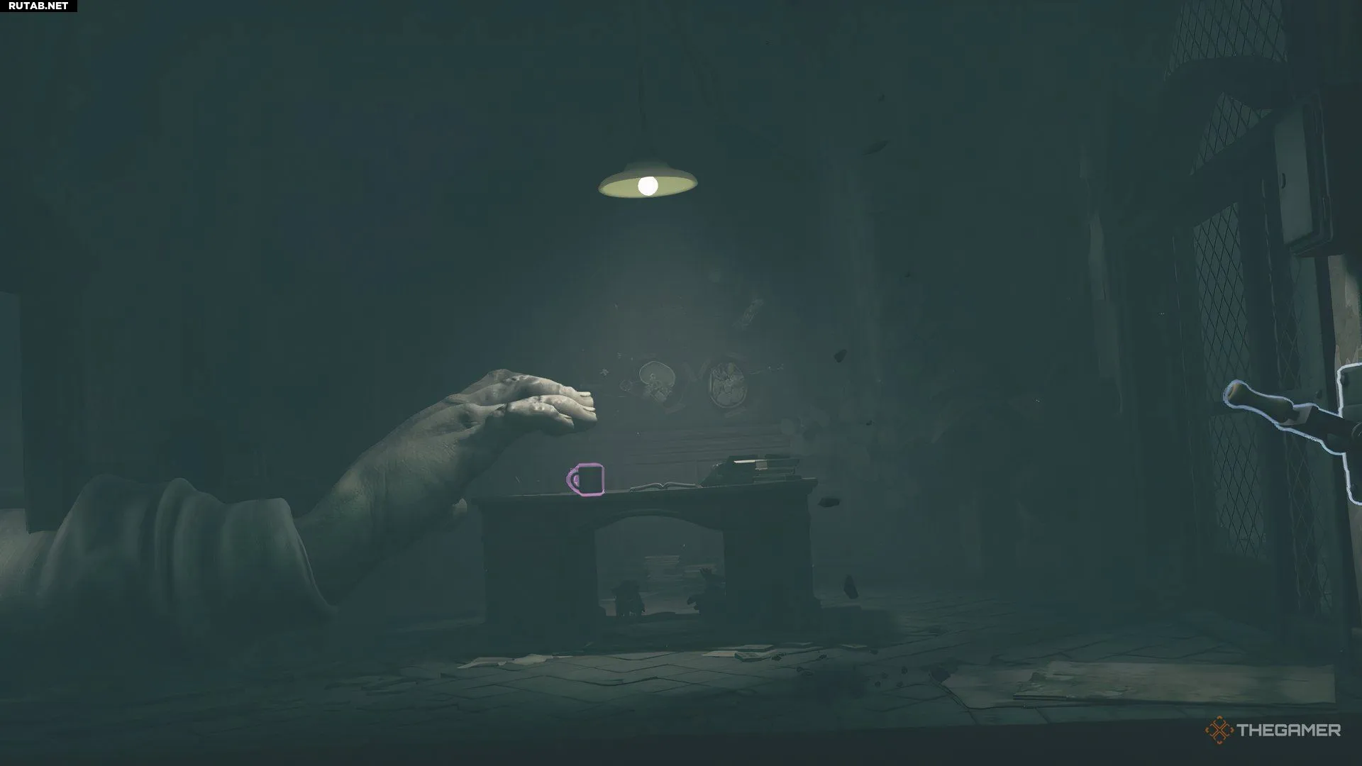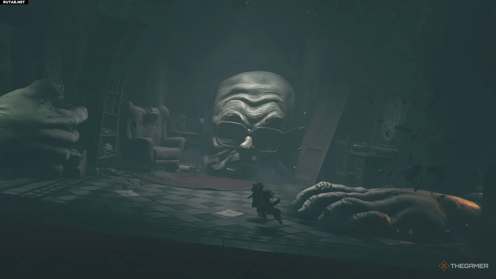 Продолжая движение, вы попадёте в зону с небольшим проёмом между дверями из сетки. Пройдя через него, вы увидите, как рука финального босса протянется по коридору, пытаясь схватить вас. Схватитесь за доску на двери справа, чтобы вбежать в комнату со столом. Первым порывом будет бежать дальше, но не делайте этого, иначе рука раздавит вас. Вместо этого немедленно спрячьтесь под столом посередине комнаты.