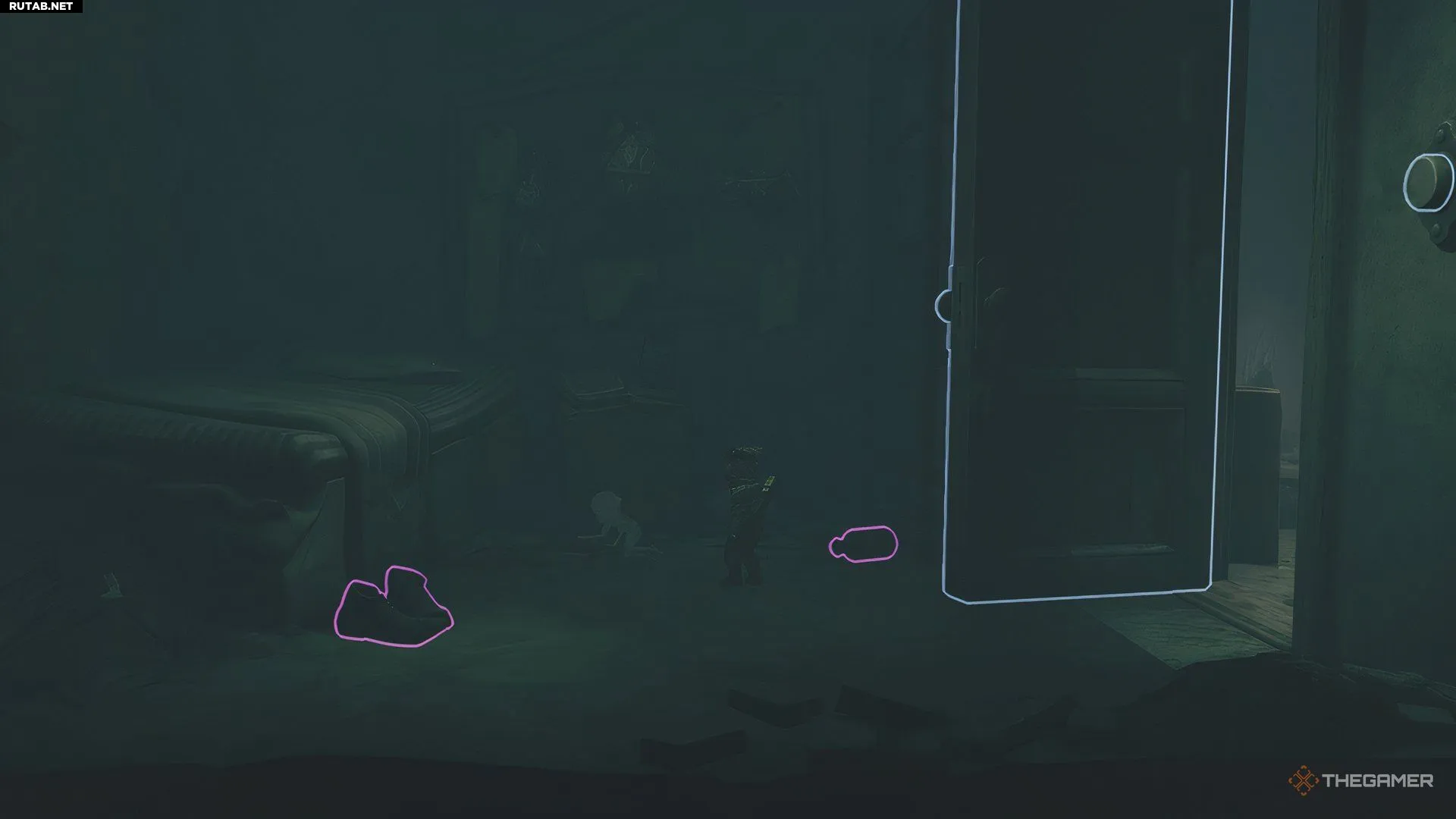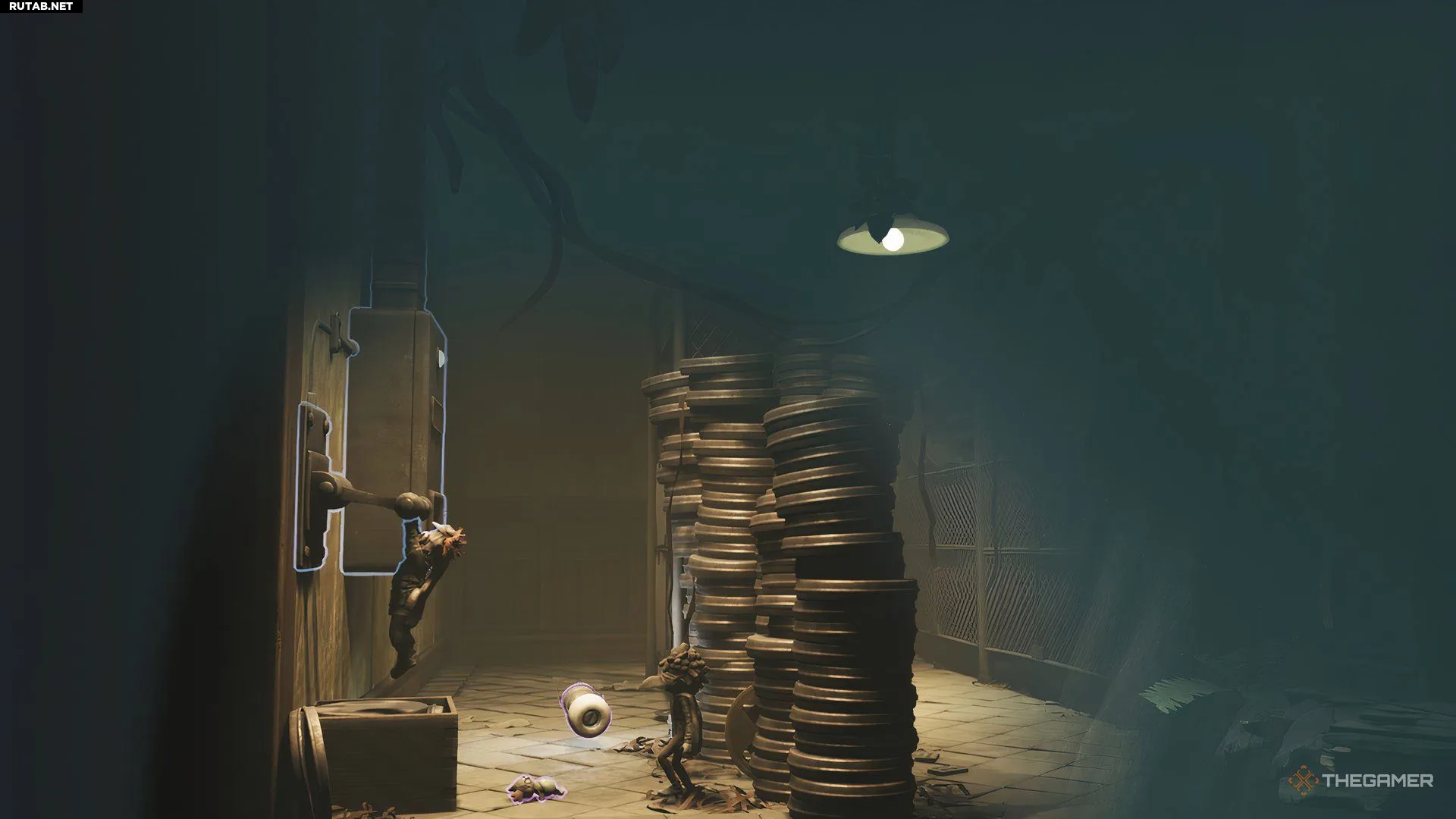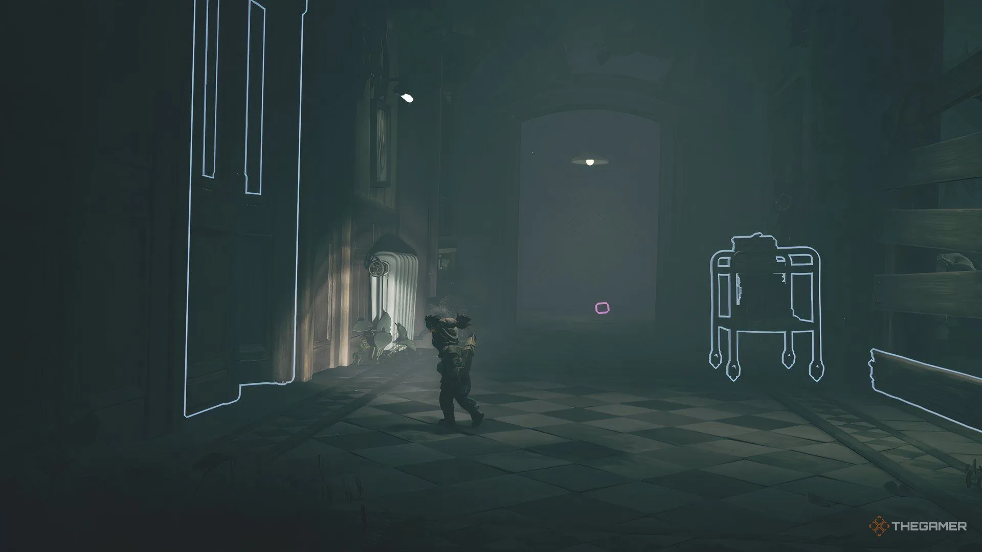 Теперь, с куклой в руках, нужно найти батарею для другого коридора. Используйте куклу, чтобы пересечь разрушенный участок в конце коридора. Здесь дверь слева будет открыта, пока вы держите куклу. С её помощью доберитесь до комнаты с рычагом, который можно потянуть. Убедитесь, что кукла лежит достаточно близко к рычагу, чтобы вы могли его активировать.