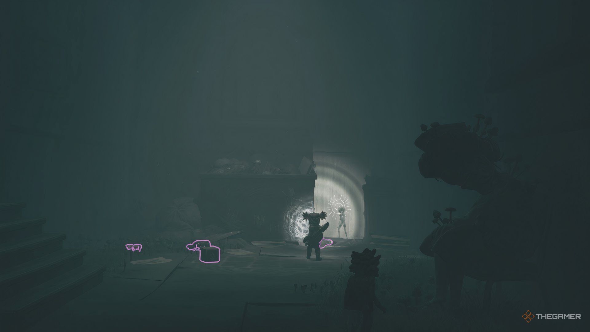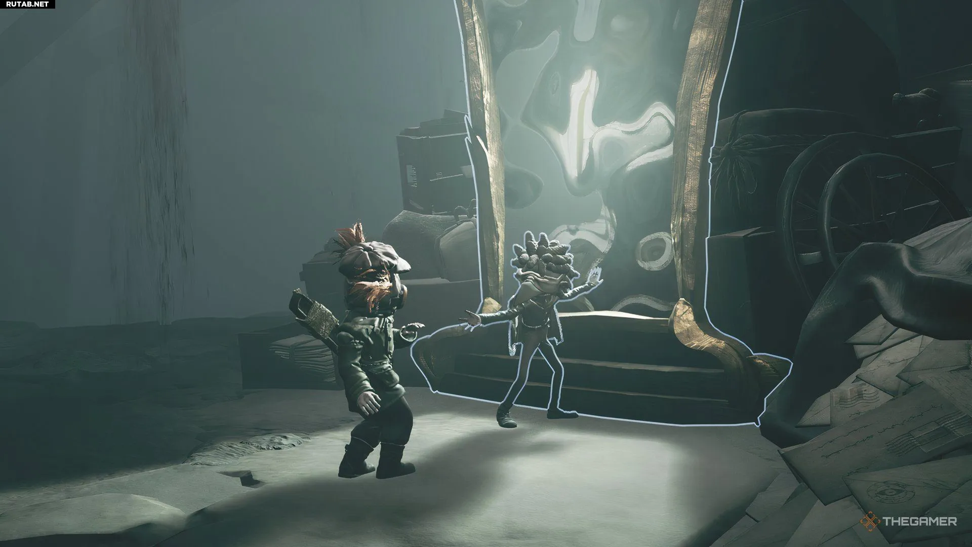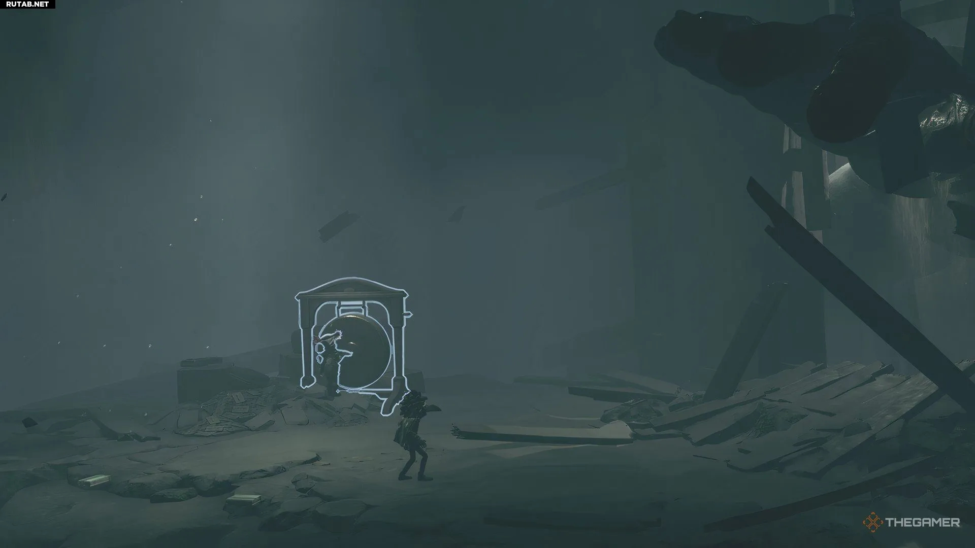 Теперь, с куклой в руках, нужно найти батарею для другого коридора. Используйте куклу, чтобы пересечь разрушенный участок в конце коридора. Здесь дверь слева будет открыта, пока вы держите куклу. С её помощью доберитесь до комнаты с рычагом, который можно потянуть. Убедитесь, что кукла лежит достаточно близко к рычагу, чтобы вы могли его активировать.