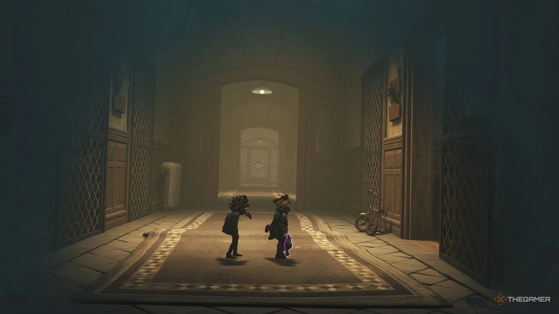 Попав в здание, пройдите через прихожую и комнату с праздничными колпаками, чтобы оказаться в длинном коридоре. Двигайтесь по направлению к камере до самого конца коридора. Справа будет заколоченная дверь, а слева — дверь, которую можно открыть.