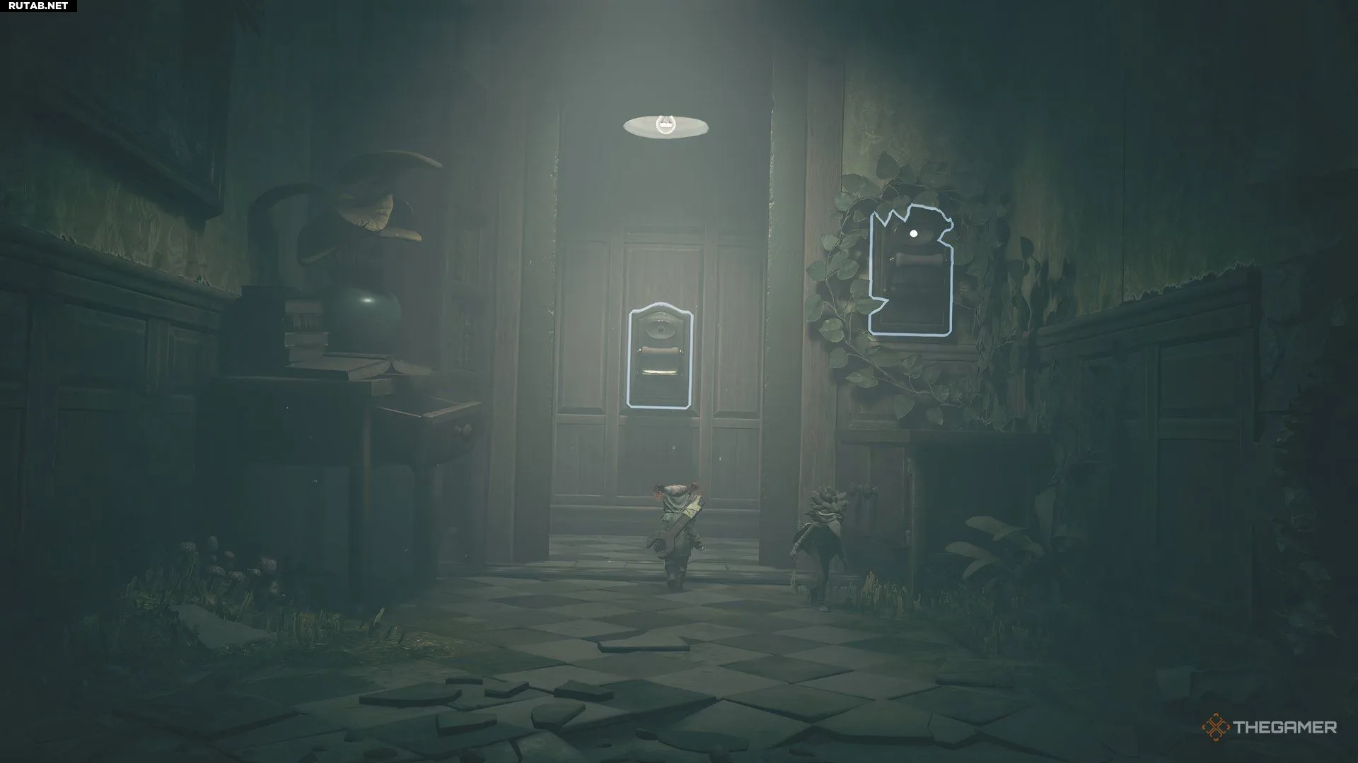 За запертой дверью заберитесь на шкаф, чтобы дотянуться до рычага в коридоре. Это откроет двери в коридоре, и вы сможете продолжить путь. Поскольку в полу большая дыра, для продвижения снова понадобится особая кукла. К счастью, дверь, которая открылась позади вас в этом коридоре (по направлению к камере), — это то место, где вы оставили куклу ранее.