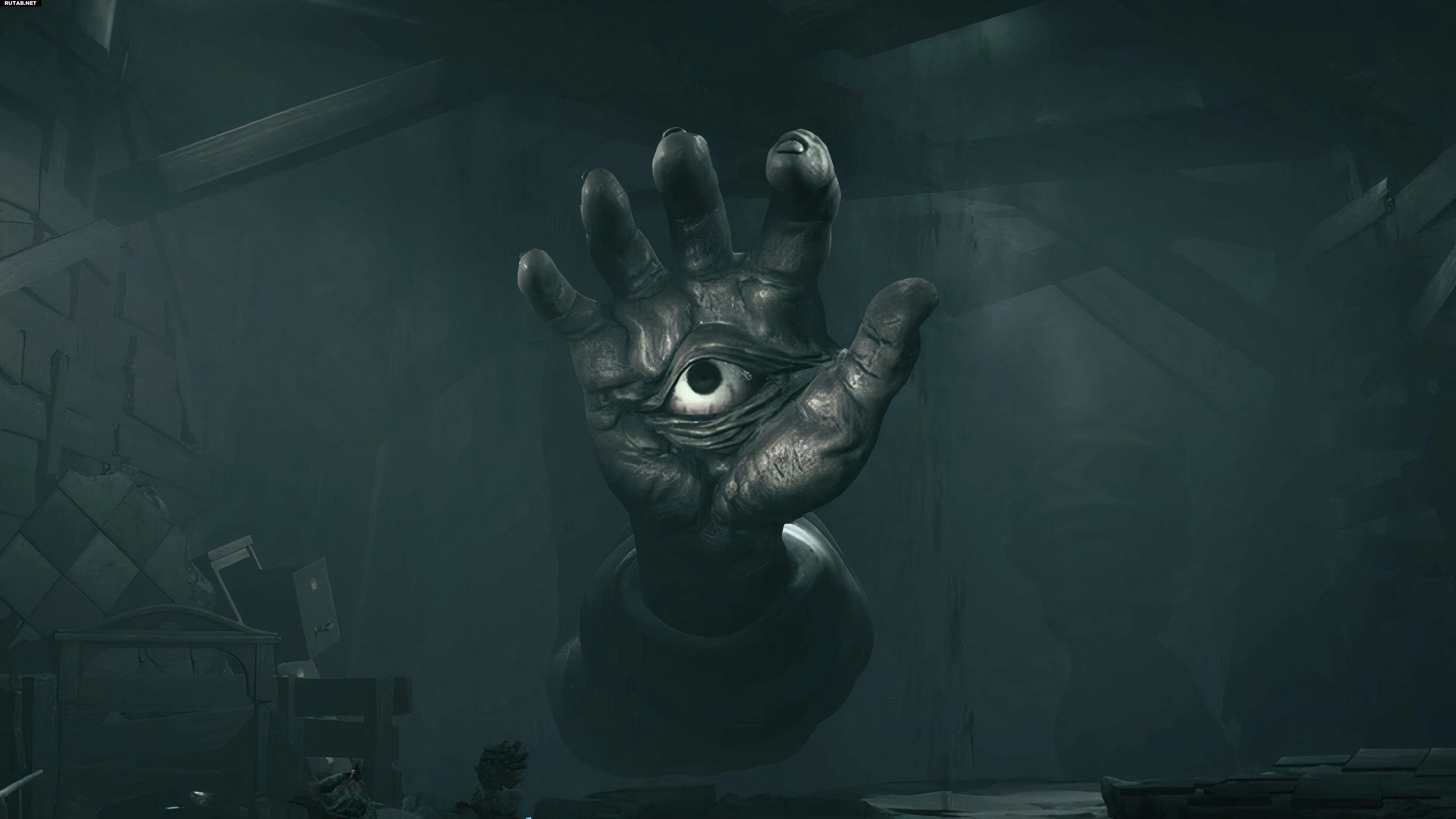 Направляйтесь к правой стороне комнаты и потяните рычаг. После этого рука заметит вас и снова начнёт преследование. Выбегите через дверь и бегите по коридору, пока не достигнете отверстия в стене слева в глубине.